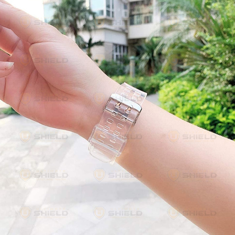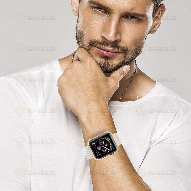 بند آلتیمیت شیلد مدل Transparent Shock از ترکیب سیلیکون نرم و TPU مقاوم ساخته شده و همزمان دوام بالا، راحتی و استایل اسپرت ارائه میدهد. طراحی یکتکهی این محصول باعث میشود نصب آن روی ساعت سریع و بیدردسر باشد و اتصال بند و کاور بهصورت ثابت و بدون لقزدن باقی بماند. کاور بدنهی ساعت را بهخوبی در برابر ضربه، خطوخش و گردوغبار محافظت میکند اما پوشش محافظی برای صفحهنمایش ندارد، که همین موضوع باعث حفظ کامل حساسیت لمسی و عملکرد روان تاچاسکرین ساعت میشود. بند سیلیکونی نیز با طراحی مشبک و قفل فلزی، تهویه مناسب، انعطافپذیری بالا و راحتی طولانیمدت را برای استفاده روزمره، ورزشی و شرایط پرتحرک فراهم میسازد. این ترکیب انتخابی مناسب برای کسانی است که بهدنبال محافظت همهجانبه و ظاهر حرفهای برای ساعت هوشمند خود هستند.