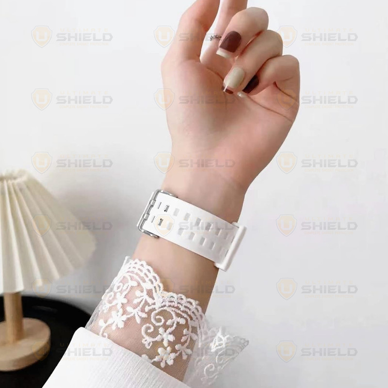 بند آلتیمیت شیلد مدل Transparent Shock از ترکیب سیلیکون نرم و TPU مقاوم ساخته شده و همزمان دوام بالا، راحتی و استایل اسپرت ارائه میدهد. طراحی یکتکهی این محصول باعث میشود نصب آن روی ساعت سریع و بیدردسر باشد و اتصال بند و کاور بهصورت ثابت و بدون لقزدن باقی بماند. کاور بدنهی ساعت را بهخوبی در برابر ضربه، خطوخش و گردوغبار محافظت میکند اما پوشش محافظی برای صفحهنمایش ندارد، که همین موضوع باعث حفظ کامل حساسیت لمسی و عملکرد روان تاچاسکرین ساعت میشود. بند سیلیکونی نیز با طراحی مشبک و قفل فلزی، تهویه مناسب، انعطافپذیری بالا و راحتی طولانیمدت را برای استفاده روزمره، ورزشی و شرایط پرتحرک فراهم میسازد. این ترکیب انتخابی مناسب برای کسانی است که بهدنبال محافظت همهجانبه و ظاهر حرفهای برای ساعت هوشمند خود هستند.