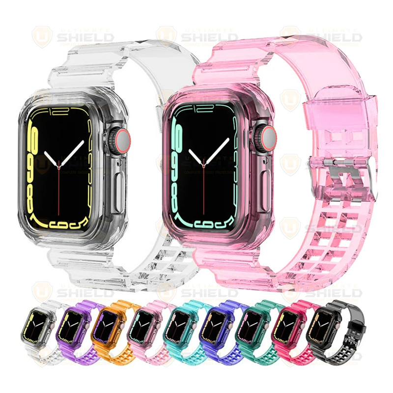 بند آلتیمیت شیلد مدل Transparent Shock مناسب برای اپل واچ 41 mm سری 7 به همراه کاور