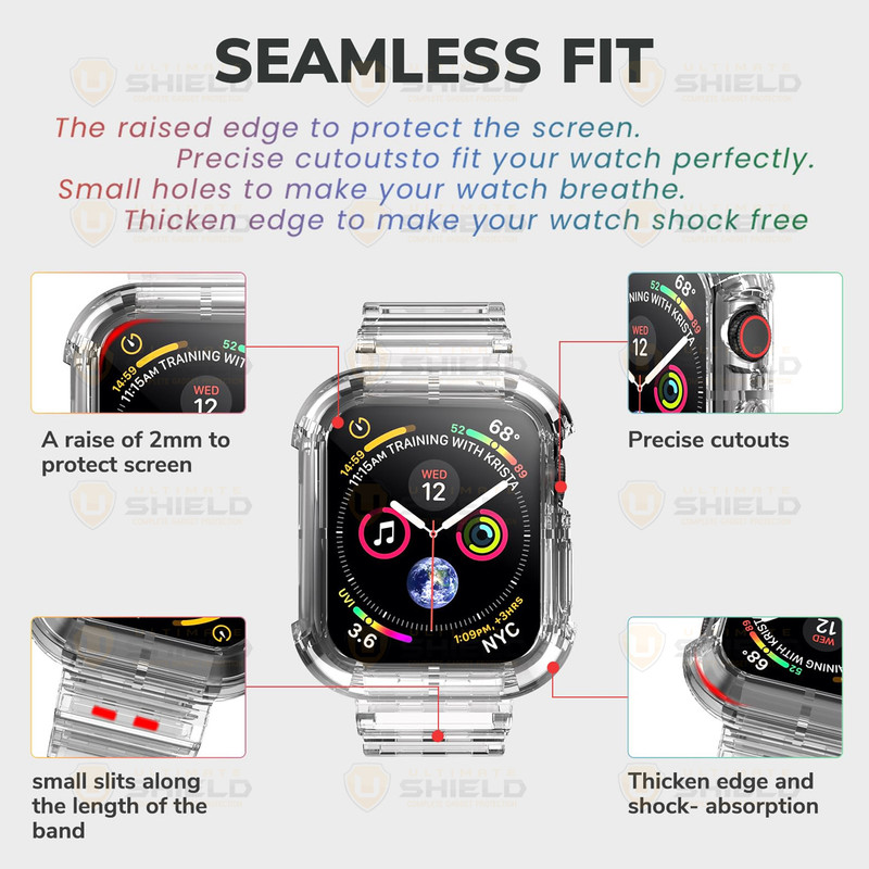 بند آلتیمیت شیلد مدل Transparent Shock مناسب برای اپل واچ 44 mm سری 4/5/6/Se به همراه کاور
