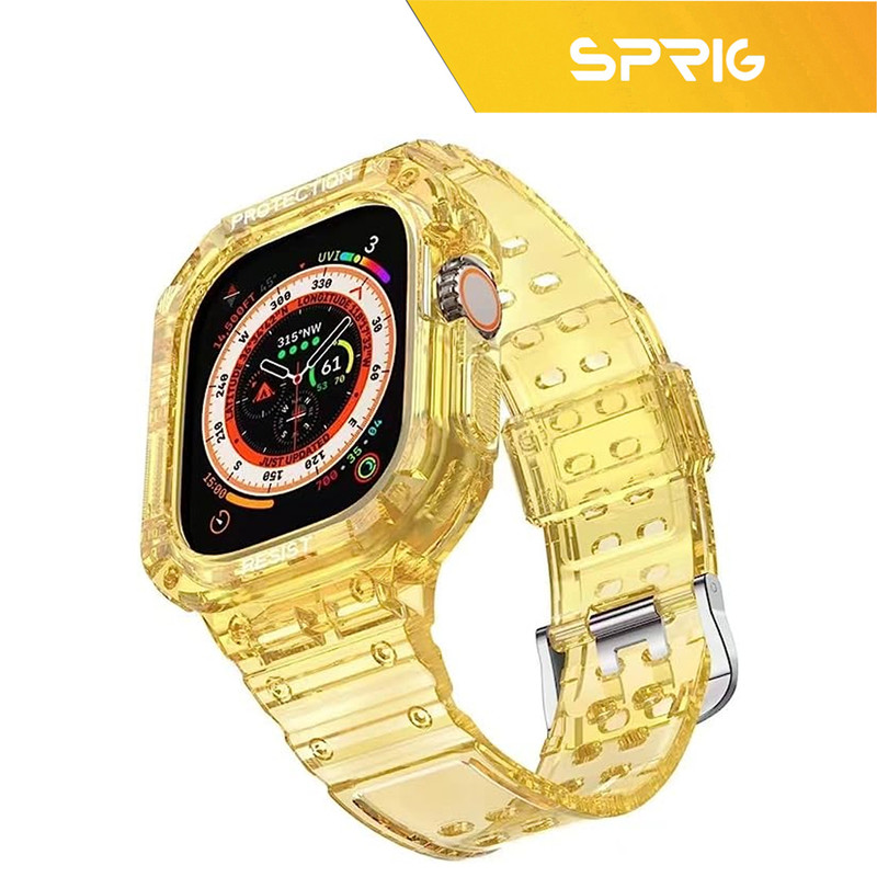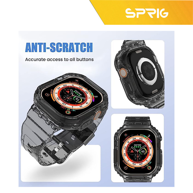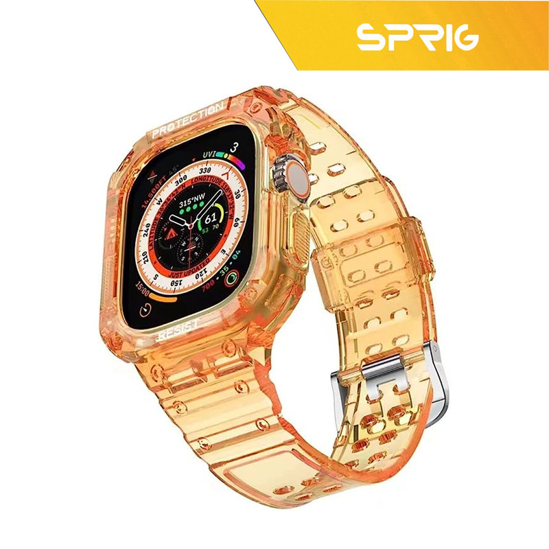 بند اسپریگ مدل Colorless G-Shock مناسب برای اپل واچ اولترا 49 میلی متری تولید شده است . این کاور ساعت شما را تا حد زیادی به کاسیو جی شاک شبیه می کند . مقاومت بالایی دارد و بخوبی از ساعت اپل واچ الترای شما در برابر ضربه و خط و خش محافظت می کند . راحت و سبک است و بخوبی بر روی دست قرار می گیرد و با برش های دقیقی که دارد هیچ محدودیتی در عملگر ها و سنسور های ساعت ایجاد نخواهد شد . همچنین برای شارژ بیسیم آن محدودیت ندارید .