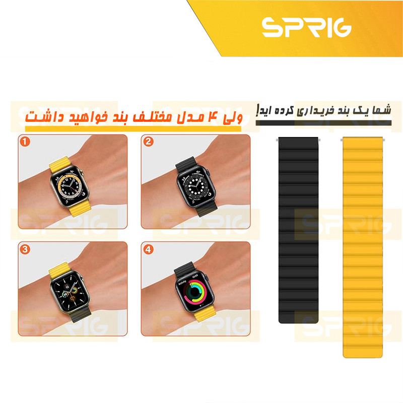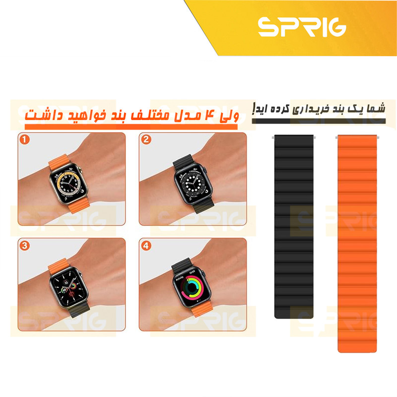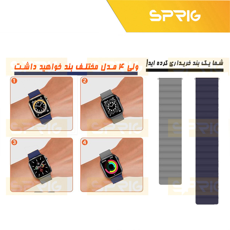 بند اسپریگ مدل Silicon Magnetic Link باکیفیت با طراحی اسپورت و خاص انتخابی ایدهآل برای مشکل پسندان است. این بند با ویژگیهای منحصر به فرد گزینهای عالی برای استفادهی روزمره و ترکیب با استایل شما است بدون اینکه تغییری در کیفیت آن مشاهده کنید. بند اسپریگ مدل Silicon Magnetic Link از استحکام و انعطاف پذیری بینظیری برخوردار است. به علاوه با داشتن بافت لطیف و نرم روی مچتان لیز نمیخورد، جا به جا نمیشود و همین ویژگیها راحتی آن را چندین برابر میکنند.اصلیترین مزیت بند مگنتی اسپریگ طراحی بدون سگک آن است. به دلیل جنس فوقالعادهای که این بند سیلیکونی دارد، عمر بالایی از ان انتظار میرود. از جمله نقاط قوت بند مگنتی سیلیکونی ، قابلیت نصب و جداسازی سریع آن است. مگنت بسیار قوی به کار رفته در این بند باعث میشود تا راحت فیکس دستتان شود.