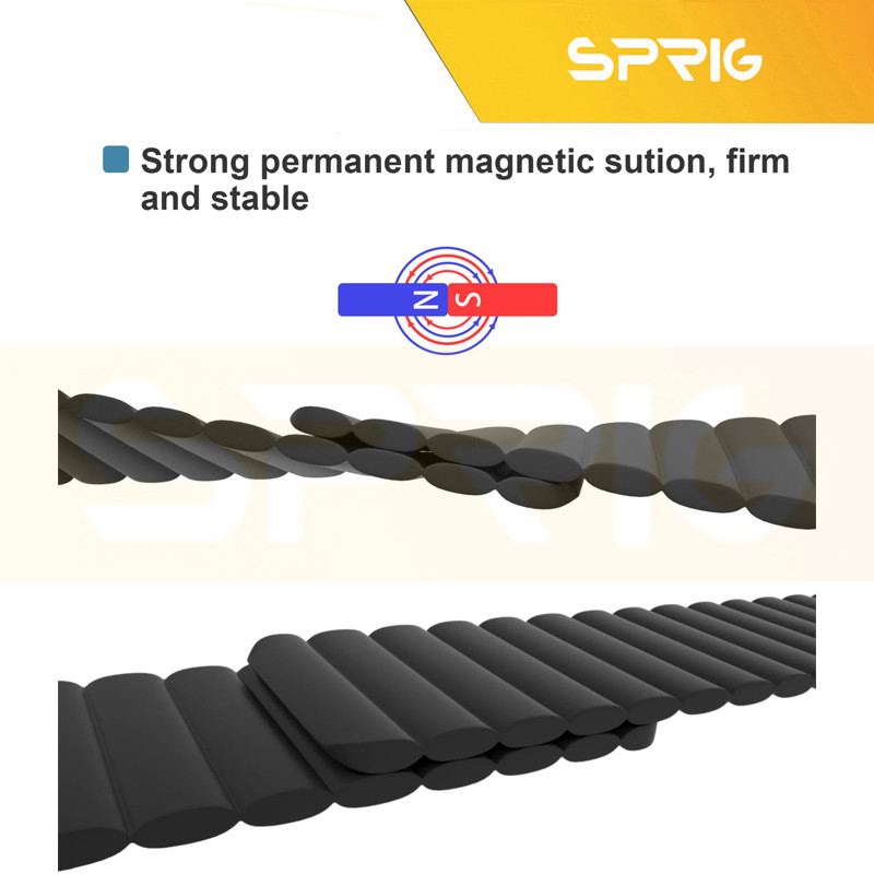 بند اسپریگ مدل Silicon Magnetic Link باکیفیت با طراحی اسپورت و خاص انتخابی ایدهآل برای مشکل پسندان است. این بند با ویژگیهای منحصر به فرد گزینهای عالی برای استفادهی روزمره و ترکیب با استایل شما است بدون اینکه تغییری در کیفیت آن مشاهده کنید. بند اسپریگ مدل Silicon Magnetic Link از استحکام و انعطاف پذیری بینظیری برخوردار است. به علاوه با داشتن بافت لطیف و نرم روی مچتان لیز نمیخورد، جا به جا نمیشود و همین ویژگیها راحتی آن را چندین برابر میکنند.اصلیترین مزیت بند مگنتی اسپریگ طراحی بدون سگک آن است. به دلیل جنس فوقالعادهای که این بند سیلیکونی دارد، عمر بالایی از ان انتظار میرود. از جمله نقاط قوت بند مگنتی سیلیکونی ، قابلیت نصب و جداسازی سریع آن است. مگنت بسیار قوی به کار رفته در این بند باعث میشود تا راحت فیکس دستتان شود.