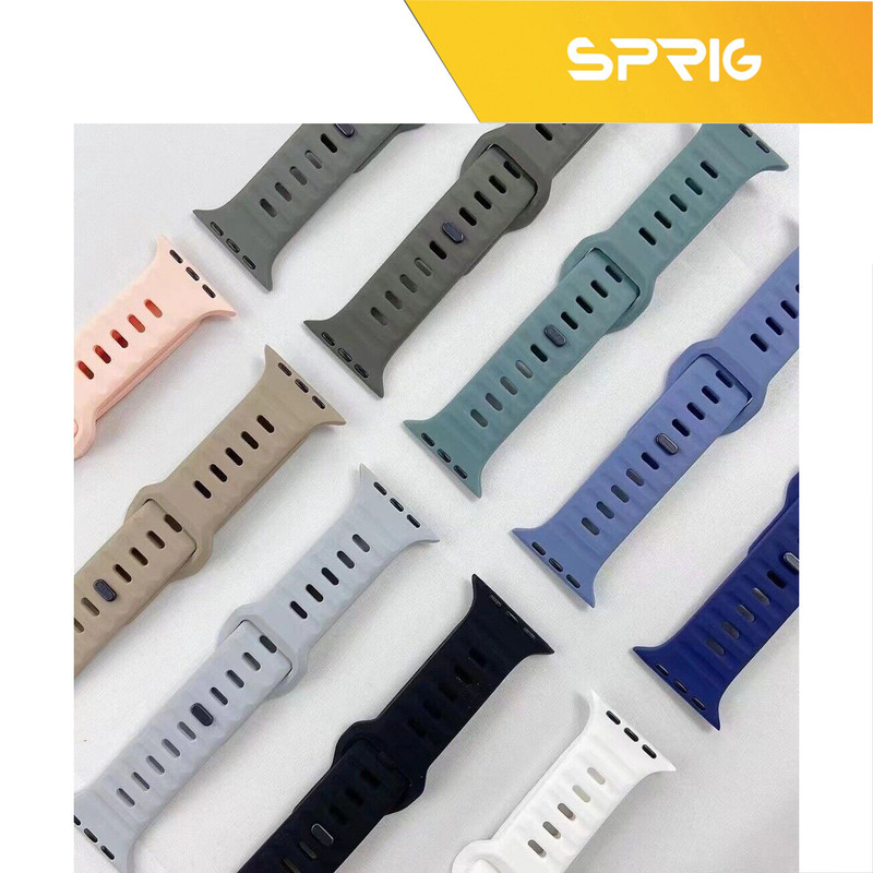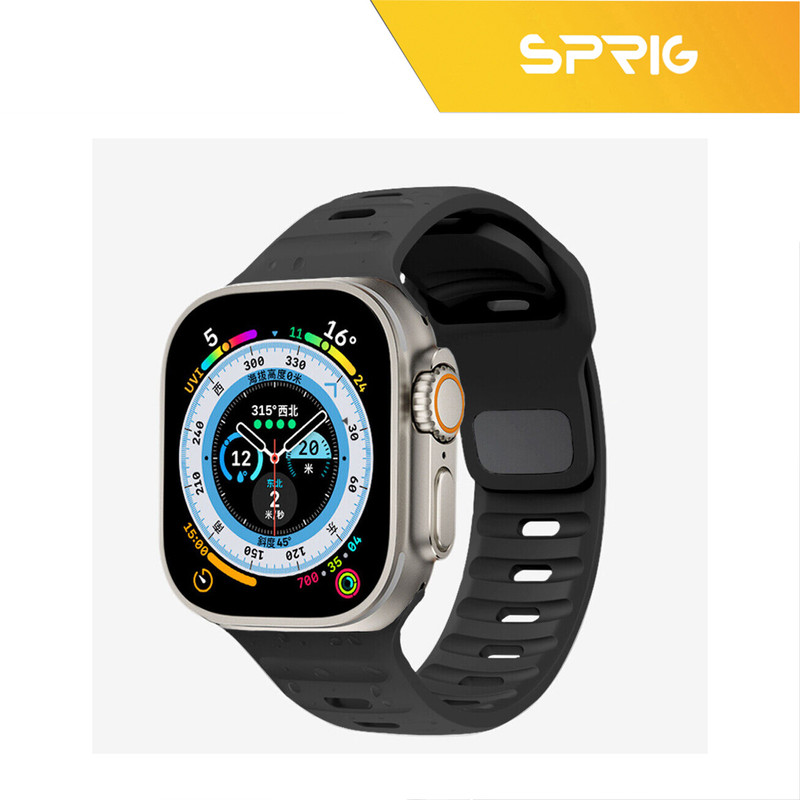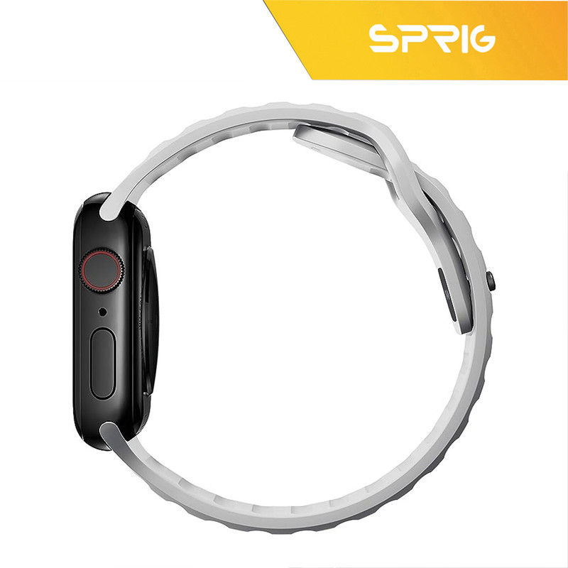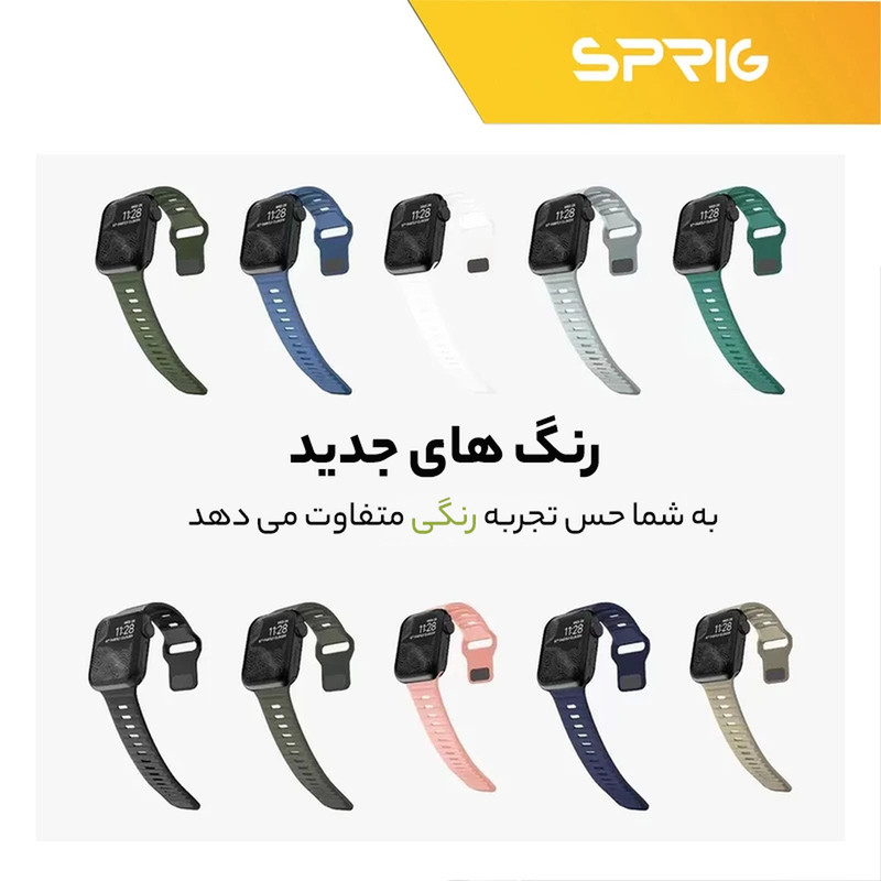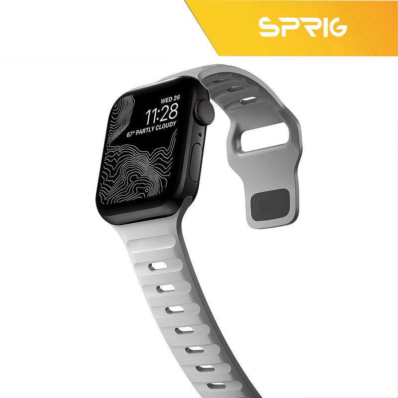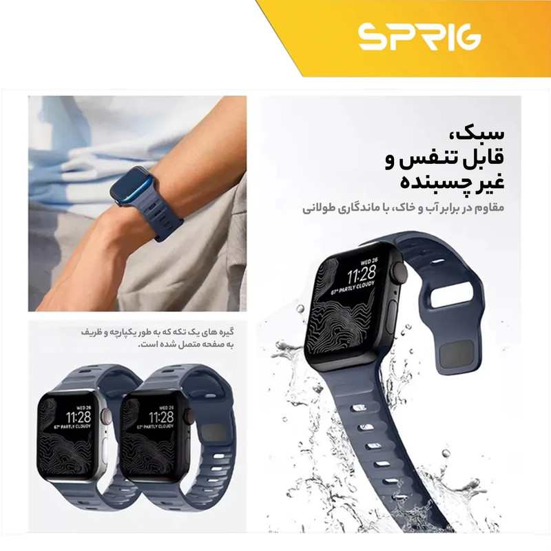 بند اسپریگ مدل Spig Sport strap سبک وزن، بادوام و قابل تنظیم می باشد. نوار ساخته شده از جنس سیلیکون سازگار با پوست، قابل تنفس، مقاوم در برابر عرق و مقاوم در برابر آب میباشد. مناسب برای کوهنوردی، پیاده روی، دویدن، صخره نوردی، دویدن، دوچرخه سواری و سایر ورزش های ماجراجویی در فضای باز میباشد. بندهای طراحی شده برای ساعت اپل دارای یک هوک فلزی قابل تنظیم برای انعطاف پذیری و ایمن کردن بند شماست.