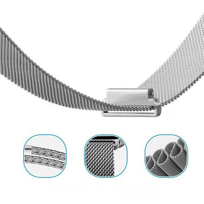 تنوع در بند فلزی میلانس موجب محبوبیت و جذابیت این محصول در بین طرفداران گردیده است. بند میلانس را می توان جز کلاسیک ترین بند های اپل واچ برشمرد. حتی اگر اپل واچ نسخه طلایی هم نداشته باشید با استفاده از بند میلانس، ساعت شما ظاهری لوکس و زیبا خواهد داشت. هر کاربر می تواند به راحتی بند ساعت هوشمند خود را بدون نیاز به ابزار خاصی تعویض نماید. آهنربایی داخل بند فلزی به کار رفته است که باعث میشود بند کاملا دور مچ قرار گیرد و کاربران با هر اندازه ی مچی میتوانند از این بند استفاده کنند و اندازهی آن را به سادگی با مچ دست خود تنظیم کنند. بند میلانس دارای بافتی ظریف و شیک میباشد، همچنین نسبت به سایر بند های اپل واچ ماندگاری و دوام بیشتری دارد. برخلاف تصور اکثر کاربران این بند روی دست سنگینی ندارد و کاربر احساس راحتی و رضایت خاطر خواهد داشت.