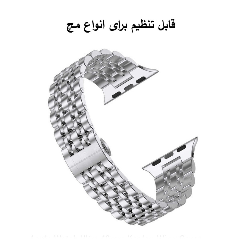 توضیحات با دوام - از جنس استیل ضد زنگ - ظاهری شیک و مدرن - مقاوم برابر سایش و آسیب - قابلیت تنظیم - قفل مطمئن - اتصال محکم و ایمن به بدنه‌ی اپل واچ - مناسب برای استفاده روزمره