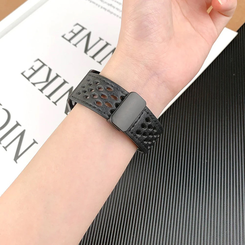بند ساعت هوشمند هاپلایت با طراحی منحصربهفرد، ترکیبی از سبک کلاسیک و راحتی مدرن را ارائه میدهد. لایه داخلی از سیلیکون نرم و انعطافپذیر ساخته شده که حس سبکی و راحتی را روی مچ فراهم میکند، در حالی که روکش چرم مصنوعی جلوهای شیک و لوکس به آن بخشیده است. طراحی سوراخدار روی بند علاوه بر زیبایی، باعث گردش بهتر هوا شده و از تعریق جلوگیری میکند. قفل مگنتی قوی، بسته شدن سریع و بدون دردسر را ممکن میسازد. این بند در رنگهای متنوع عرضه شده و برای هر سلیقهای گزینهای ایدهآل خواهد بود.