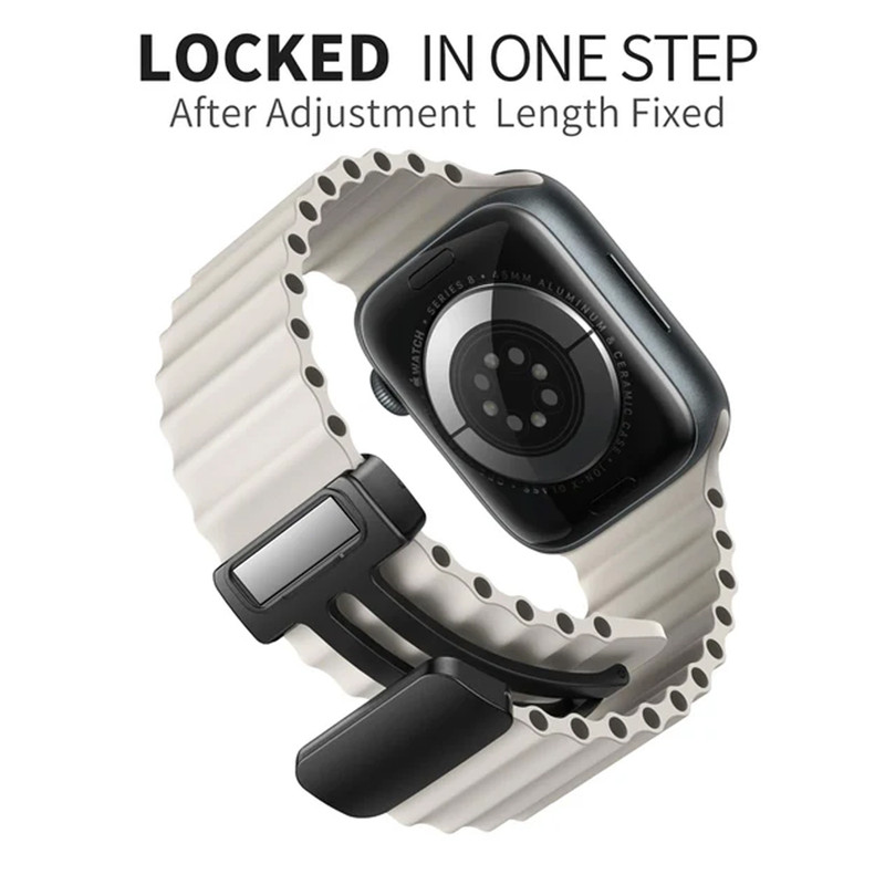 بند سیلیکونی ساعت هوشمند هاپلایت با طراحی شیک و مدرن از سیلیکون نرم و با دوام ساخته شده است که راحتی و دوام بالایی را تضمین میکند. این بند در رنگهای جذاب و متنوع، بدون نیاز به ابزار خاصی نصب و جدا میشود و برای استفاده روزانه، فعالیتهای ورزشی و ماجراجوییهای بیرونی بسیار مناسب است و به شما استایلی شیک و منحصر به فرد میبخشد. قفل آهنربایی قوی آن، به شما اجازه میدهد ساعت خود را به سرعت و به راحتی باز و بسته کنید و در عین حال اطمینان حاصل میکند که ساعت شما همیشه به صورت ایمن و محکم در جای خود قرار دارد.