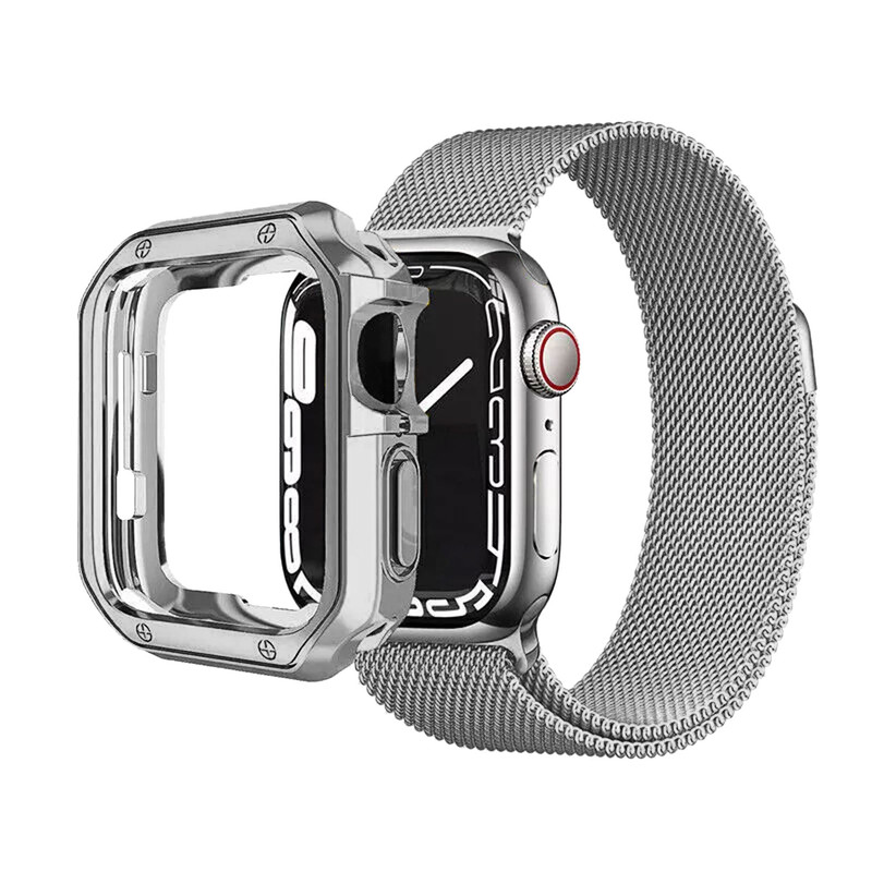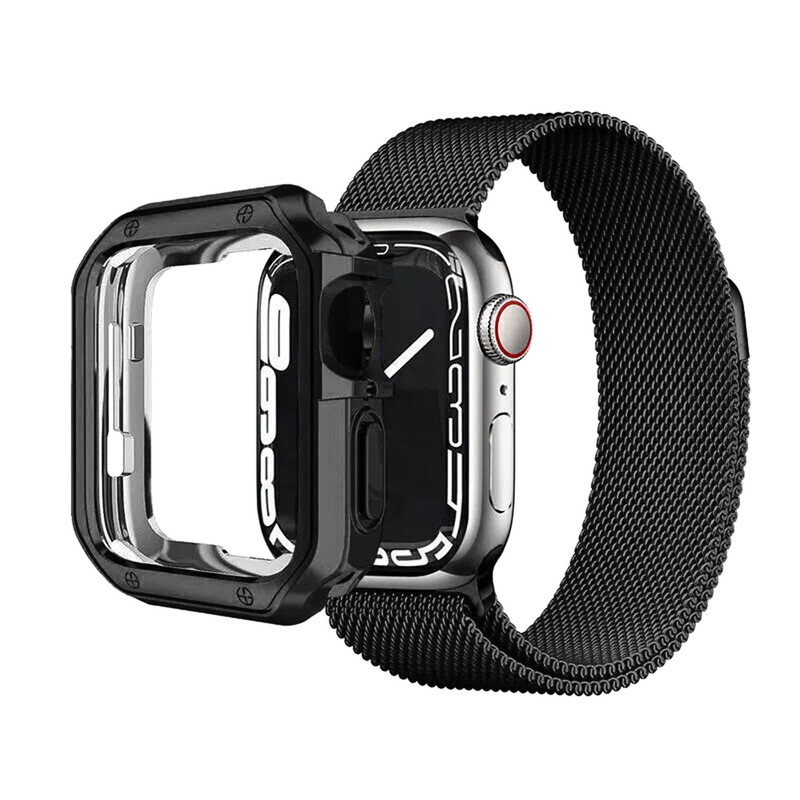 این بند اسمارت واچ از جنس فلزی باکیفیت و مقاوم ساخته شده است که علاوه بر زیبایی و استحکام، کاملاً ضد حساسیت بوده و برای انواع پوست مناسب است. طراحی این بند به گونهای است که تعویض و نصب آن بسیار آسان بوده و تجربهای راحت و بدون دردسر را برای شما فراهم میکند. اگر به دنبال ترکیب شیکی از استایل و کاربرد هستید، این بند انتخابی ایدهآل برای شماست. همچنین همراه این بند کاوری عرضه میشود که بدنهای از جنس TPU یا همان پلاستیک نرم دارد. این متریال دارای خاصیت انعطاف پذیری بوده و میتواند به راحتی از اسمارت واچ شما در برابر ضربه و خط و خش مراقبت کند. این محصول به هنگام نصب نیاز به دقت بالایی ندارد و میتوانید به راحتی آن را نصب کنید. برشکاری دقیق این کاور محافظ در قسمت دکمهها و پورتها سبب شده تا در دسترسی به آنها محدودیتی ایجاد نشود و به هنگام شارژ کردن اسمارت واچ نیازی به جداسازی کاور نیست. علاوه بر این ضخامت کم این محصول اسمارت واچ شما را بیش از حد برجسته نمیکند و کاملا با ابعاد ساعت هماهنگ است.