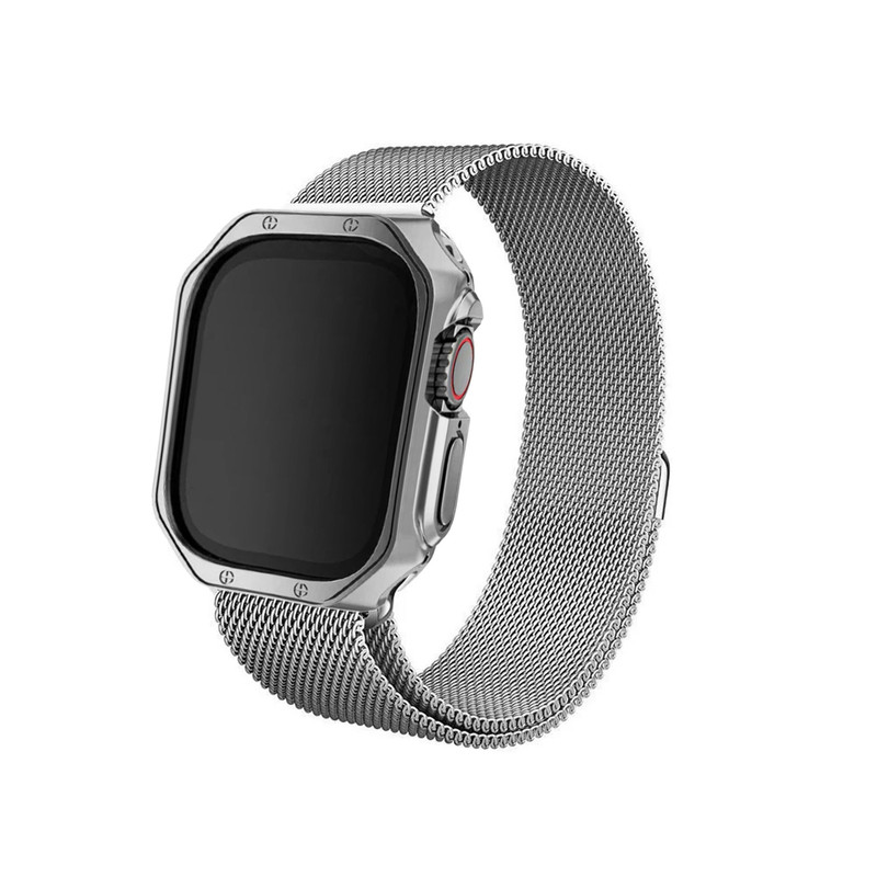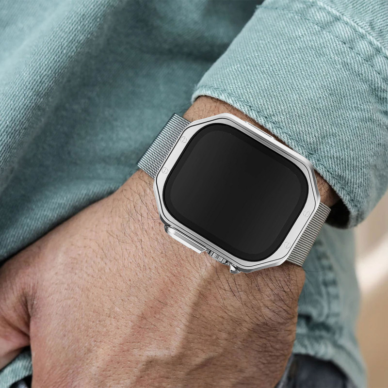 این بند اسمارت واچ از جنس فلزی باکیفیت و مقاوم ساخته شده است که علاوه بر زیبایی و استحکام، کاملاً ضد حساسیت بوده و برای انواع پوست مناسب است. طراحی این بند به گونهای است که تعویض و نصب آن بسیار آسان بوده و تجربهای راحت و بدون دردسر را برای شما فراهم میکند. اگر به دنبال ترکیب شیکی از استایل و کاربرد هستید، این بند انتخابی ایدهآل برای شماست. همچنین همراه این بند کاوری عرضه میشود که بدنهای از جنس TPU یا همان پلاستیک نرم دارد. این متریال دارای خاصیت انعطاف پذیری بوده و میتواند به راحتی از اسمارت واچ شما در برابر ضربه و خط و خش مراقبت کند. این محصول به هنگام نصب نیاز به دقت بالایی ندارد و میتوانید به راحتی آن را نصب کنید. برشکاری دقیق این کاور محافظ در قسمت دکمهها و پورتها سبب شده تا در دسترسی به آنها محدودیتی ایجاد نشود و به هنگام شارژ کردن اسمارت واچ نیازی به جداسازی کاور نیست. علاوه بر این ضخامت کم این محصول اسمارت واچ شما را بیش از حد برجسته نمیکند و کاملا با ابعاد ساعت هماهنگ است.