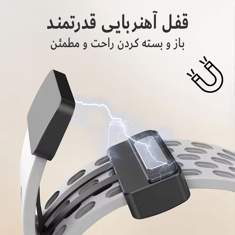 قفل مگنتی: با قفل مگنتی مطمئن، به راحتی بند را باز و بسته کنید و از ثابت ماندن آن در طول روز مطمئن باشید.