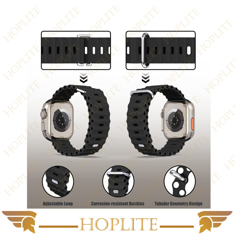 بند هاپلایت مدل Ocean سبک وزن، بادوام و قابل تنظیم، به طور یکپارچه از دو لایه پارچه، بدون دوخت بافته شده می باشد. از قلاب‌های تیتانیومی مقاوم در برابر خوردگی و بدون زنگ زدگی برای اتصال ایمن استفاده می کند. نوار ساخته شده از جنس سیلیکون سازگار با پوست، قابل تنفس، مقاوم در برابر عرق و مقاوم در برابر آب میباشد. همچنین با قلاب تیتانیوم ، سبک وزن میباشد. مناسب برای کوهنوردی، پیاده روی، دویدن، صخره نوردی، دویدن، دوچرخه سواری و سایر ورزش های ماجراجویی در فضای باز میباشد. بندهای طراحی شده برای ساعت اپل دارای یک هوک فلزی قابل تنظیم برای انعطاف پذیری و ایمن کردن بند شماست.