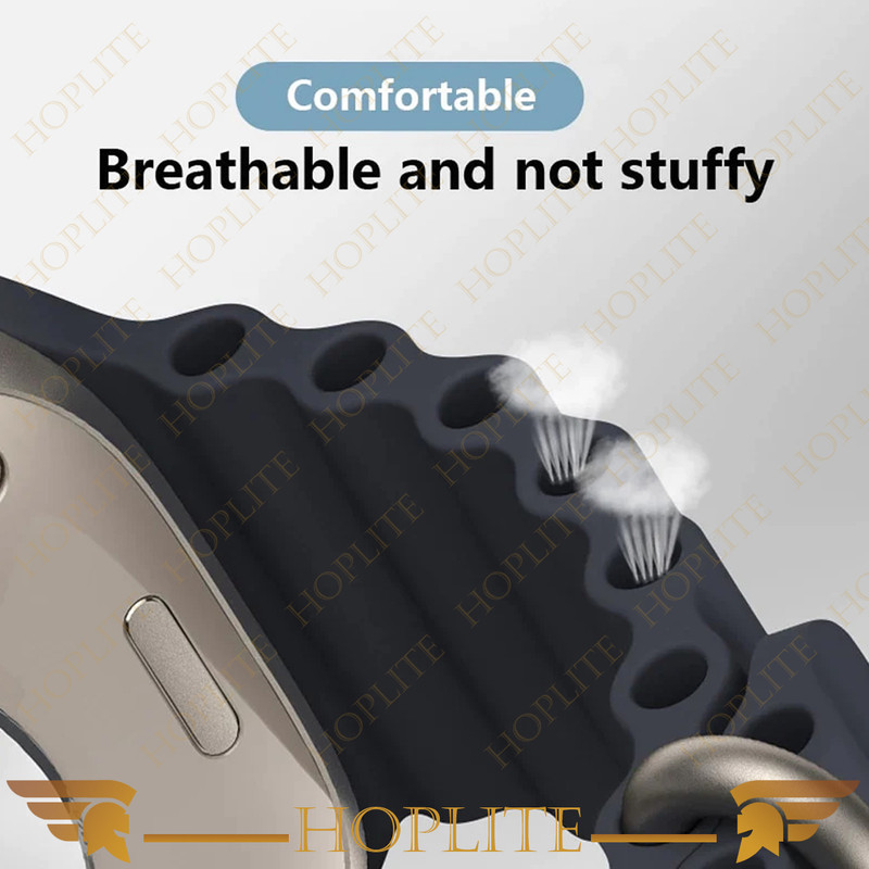 بند هاپلایت مدل Ocean سبک وزن، بادوام و قابل تنظیم، به طور یکپارچه از دو لایه پارچه، بدون دوخت بافته شده می باشد. از قلابهای تیتانیومی مقاوم در برابر خوردگی و بدون زنگ زدگی برای اتصال ایمن استفاده می کند. نوار ساخته شده از جنس سیلیکون سازگار با پوست، قابل تنفس، مقاوم در برابر عرق و مقاوم در برابر آب میباشد. همچنین با قلاب تیتانیوم ، سبک وزن میباشد. مناسب برای کوهنوردی، پیاده روی، دویدن، صخره نوردی، دویدن، دوچرخه سواری و سایر ورزش های ماجراجویی در فضای باز میباشد. بندهای طراحی شده برای ساعت اپل دارای یک هوک فلزی قابل تنظیم برای انعطاف پذیری و ایمن کردن بند شماست.