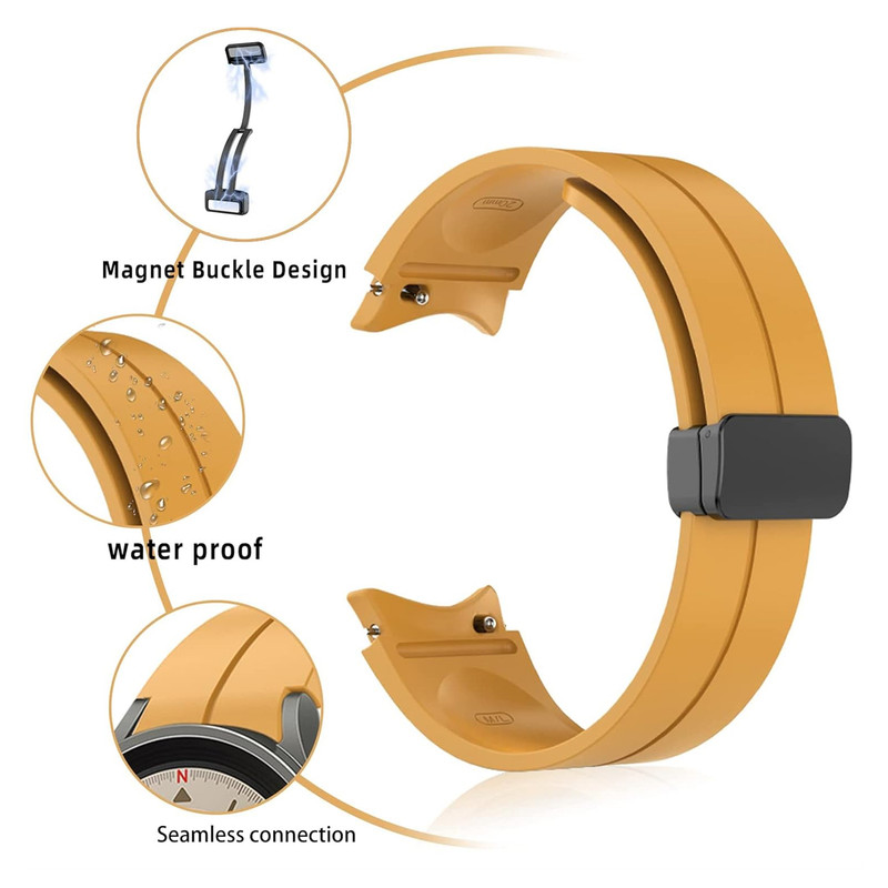 بند سیلیکونی مدل Magnetic ORG با قفل مغناطیسی تاشو (Magnetic Folding Buckle Silicone Strap)، یکی از گزینههای نوآورانه و تخصصی برای کاربران ساعتهای هوشمند سامسونگ است که ترکیبی از راحتی، دوام و طراحی مدرن را ارائه میدهد. این بند از سیلیکون باکیفیت و ضدحساسیت ساخته شده و در برابر تعریق و رطوبت مقاومت بالایی دارد، بهطوریکه برای استفادهی روزمره و فعالیتهای ورزشی کاملاً ایدهآل است. مکانیزم بسته شدن آن بهصورت تاشو و مجهز به آهنرباهای قدرتمند طراحی شده تا بدون نیاز به سوراخ یا سگک سنتی، فیکس شدن دقیق و سریع روی مچ را فراهم کند. طراحی یکپارچه و مینیمال بند باعث میشود بهخوبی با فرم دست هماهنگ شود و هیچ فضای اضافهای در محل اتصال باقی نماند. این بند با عرض استاندارد ۲۰ میلیمتر تولید شده و بهطور اختصاصی با ساعتهای سامسونگ سری Galaxy Watch 4، 5، 6، 7 و FE سازگار است. پس از نصب، بند بهطور کامل قاب ساعت را در بر میگیرد و جلوهای منظم و یکدست به ساعت میبخشد.