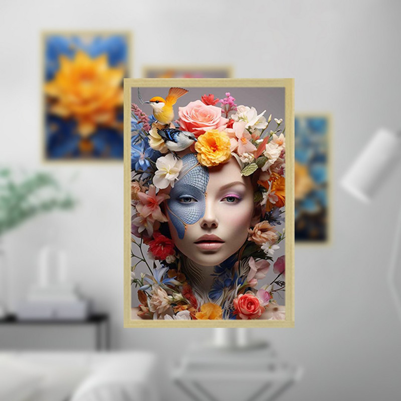 تابلو بکلیت طرح آرایش چهره و نقاشی گل مدل BE-1392 مجموعه 3 عددی