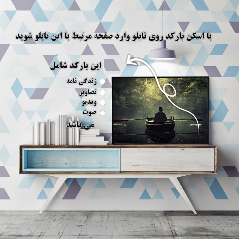 سایر توضیحاتبر روی چاپ تصویر این تابلو در گوشه قاب , بارکد با قابلیت اسکن وجود دارد که شما را به صفحه از پیش طراحی شده برای این هنرمند هدایت می نماید.