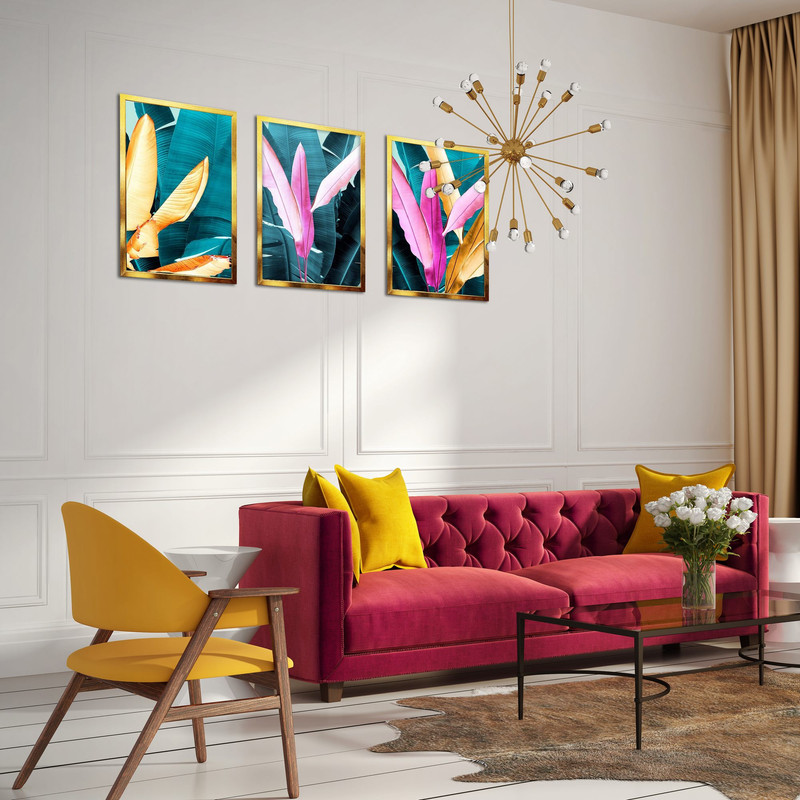 تابلو بکلیت طرح دکوراتیو درخت برگ موزی مدل T-576 مجموعه 3 عددی