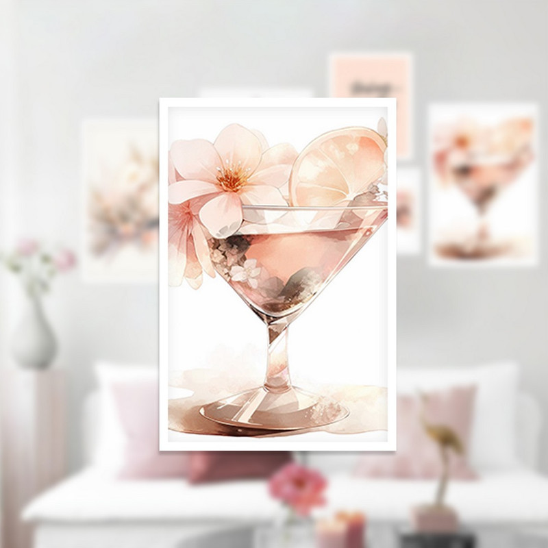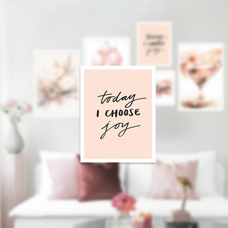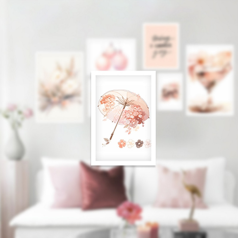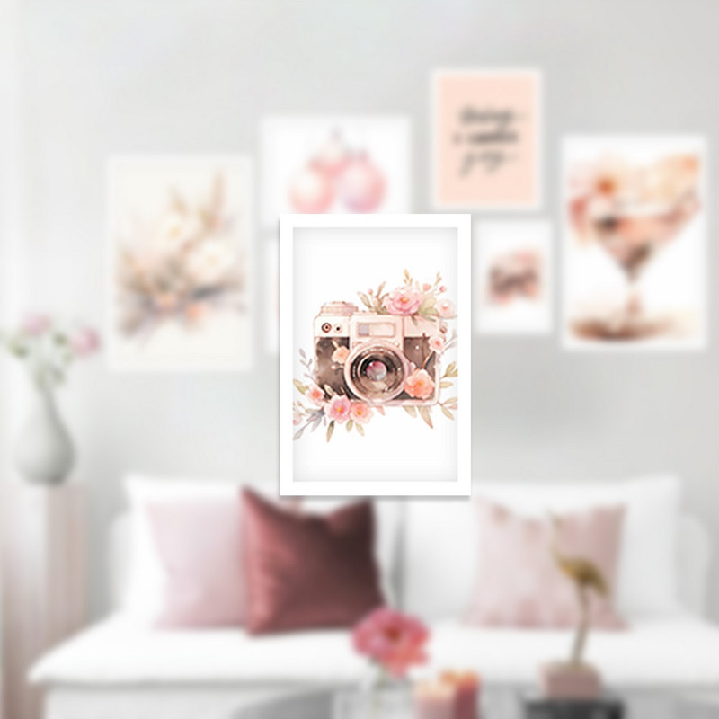 تابلو بکلیت طرح دکوراتیو گل صورتی مدل W-1146 مجموعه 7 عددی