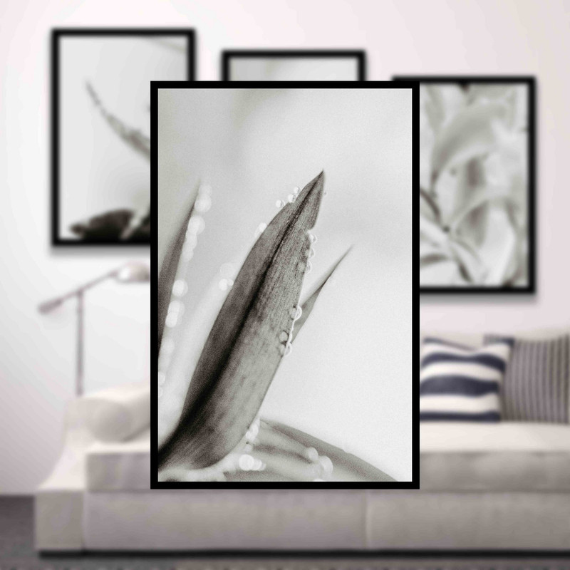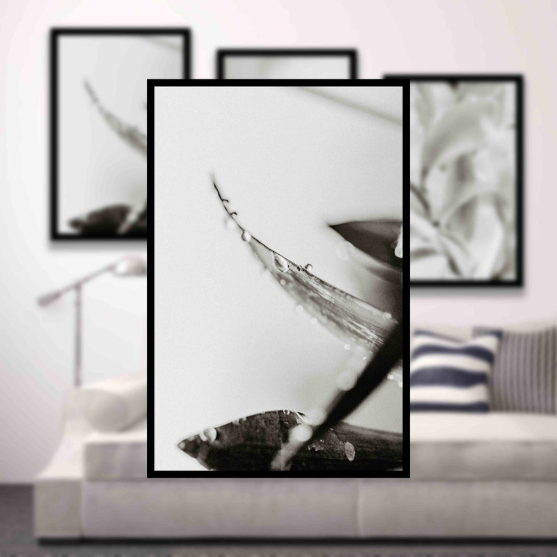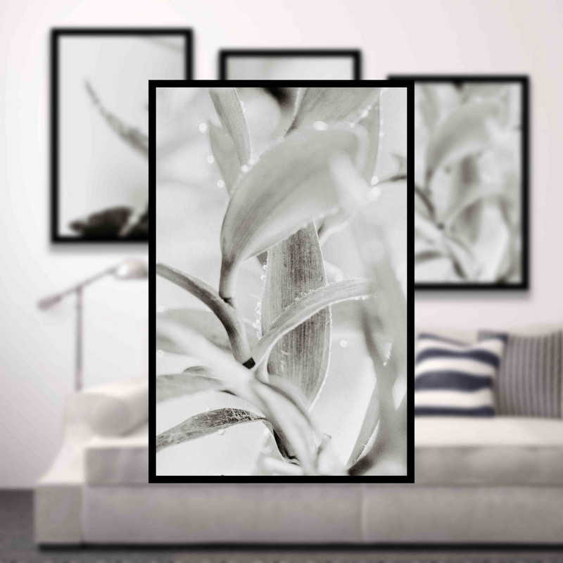 تابلو بکلیت طرح دکوری مدرن برگ سیاه و سفید مدل B-1512 مجموعه 3 عددی