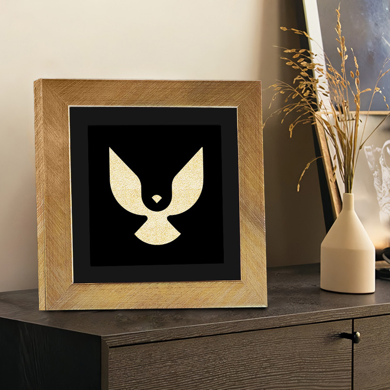 این تابلو نفیس را می توان به عنوان یک دکوری شیک و جذاب بر روی میز و یا دیوار استفاده نمود.به همین جهت این تابلو شامل یک آویز و پایه نگهدارنده می باشد.قاب این تابلو از جنس pvc با کیفیت بسیار بالا می باشد.طرح آن به صورت cnc شده بر روی یک تخته به رنگ طلایی با فاصله کمی از قاب قرار داده شده است و در طرح های متنوع عرضه میگردد که می تواند آنها را به صورت مجموعه ای در کنار هم قرار داد.این ترکیب می تواند بسیار جذاب و منحصر به فرد باشد و میتوان آنرا به صورت رومیزی استفاده کرد و همچنین با جدا نمودن پایه از پشت آن به صورت دیواری استفاده نمود.
