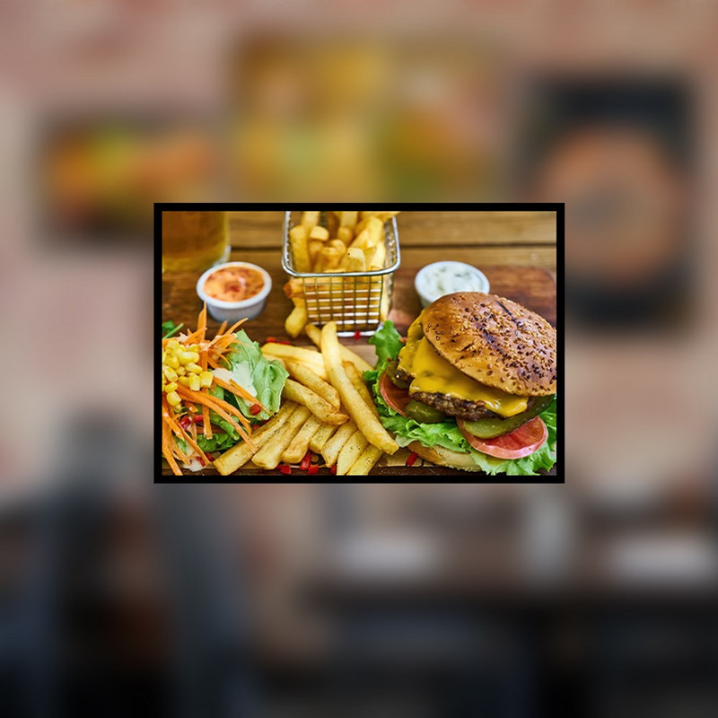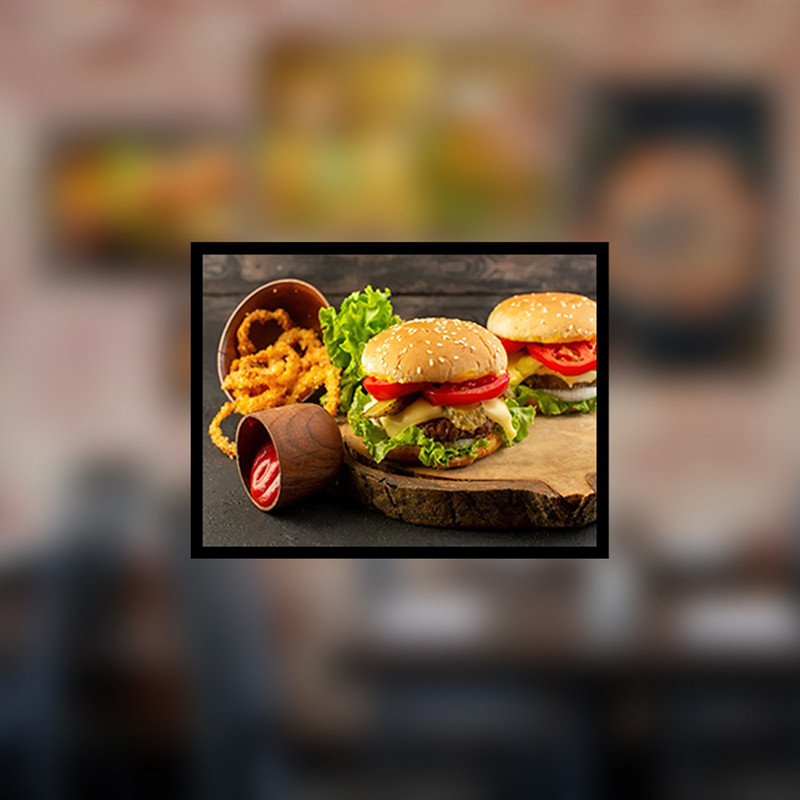 تابلو بکلیت طرح رستورانی فست فود پیتزا و همبرگر مدل B-699 مجموعه 5 عددی