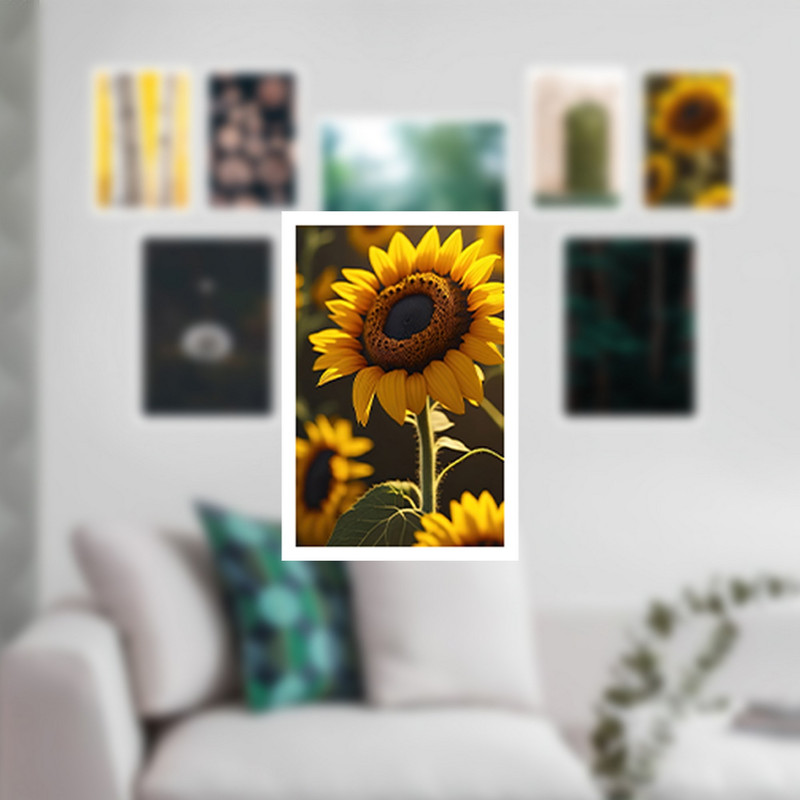 تابلو بکلیت طرح مدرن طبیعت و گل آفتابگردان مدل W-1814 مجموعه 7 عددی