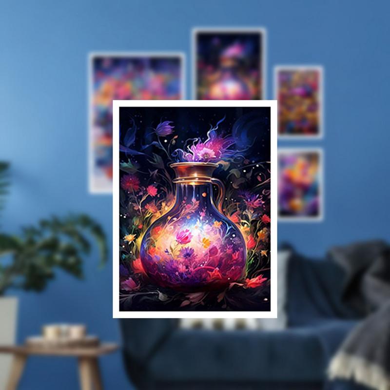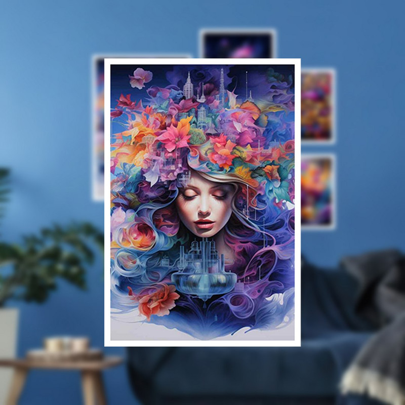 تابلو بکلیت طرح مدرن نقاشی ابرنگی گل و چهره مدل W-1154 مجموعه 5 عددی