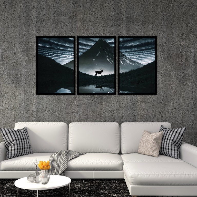 تابلو بکلیت طرح منظره کوهستان و ابر مدل B-S4791 مجموعه 3 عددی