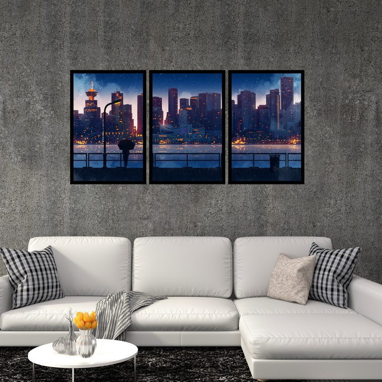تابلو بکلیت طرح نقاشی منظره شهری مدل B-S4860 مجموعه 3 عددی