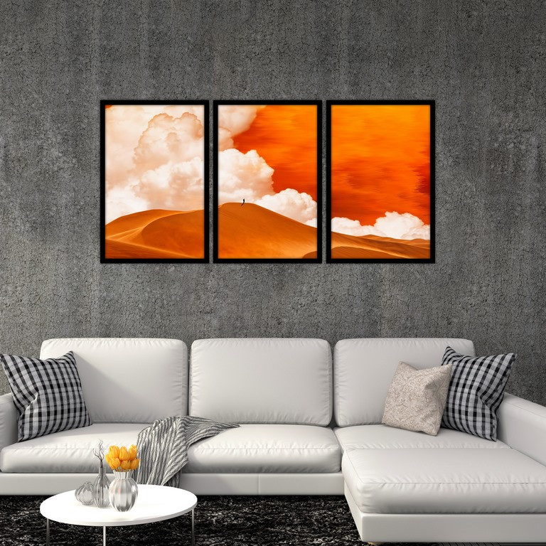 تابلو بکلیت طرح نقاشی منظره کویر و صحرا مدل B-S4764 مجموعه 3 عددی