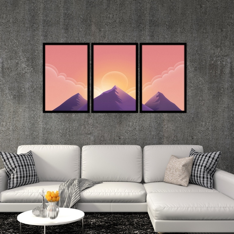 تابلو بکلیت طرح نقاشی منظره ی کوهستان مدل B-S4948  مجموعه 3 عددی