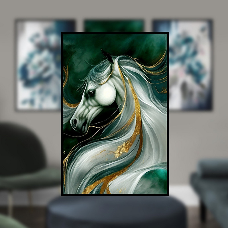 تابلو بکلیت طرح نقاشی گل و اسب مدل B-1592 مجموعه 3 عددی