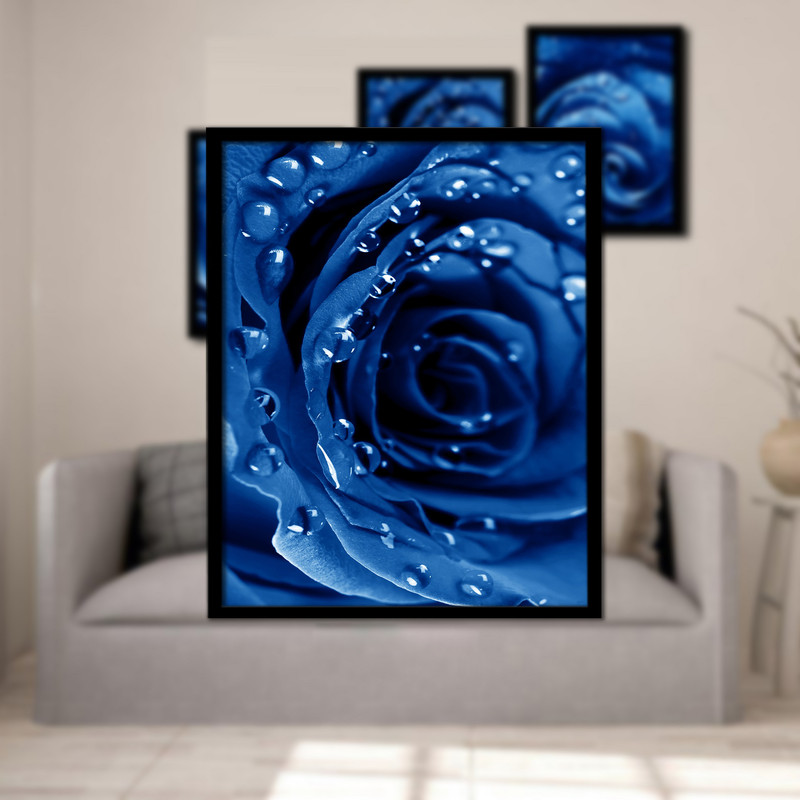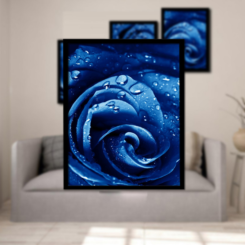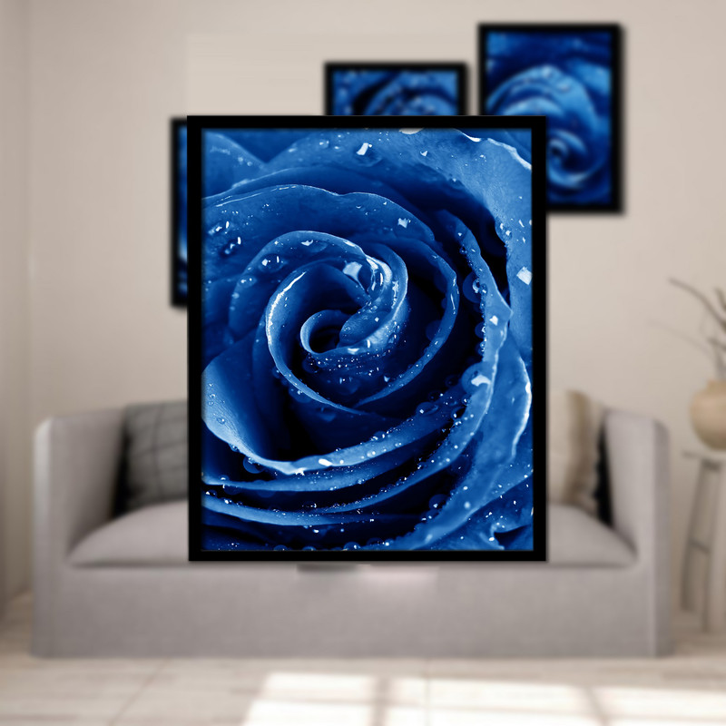 تابلو بکلیت طرح گل رز آبی مدل دکوراتیو کد B-191 مجموعه 3 عددی