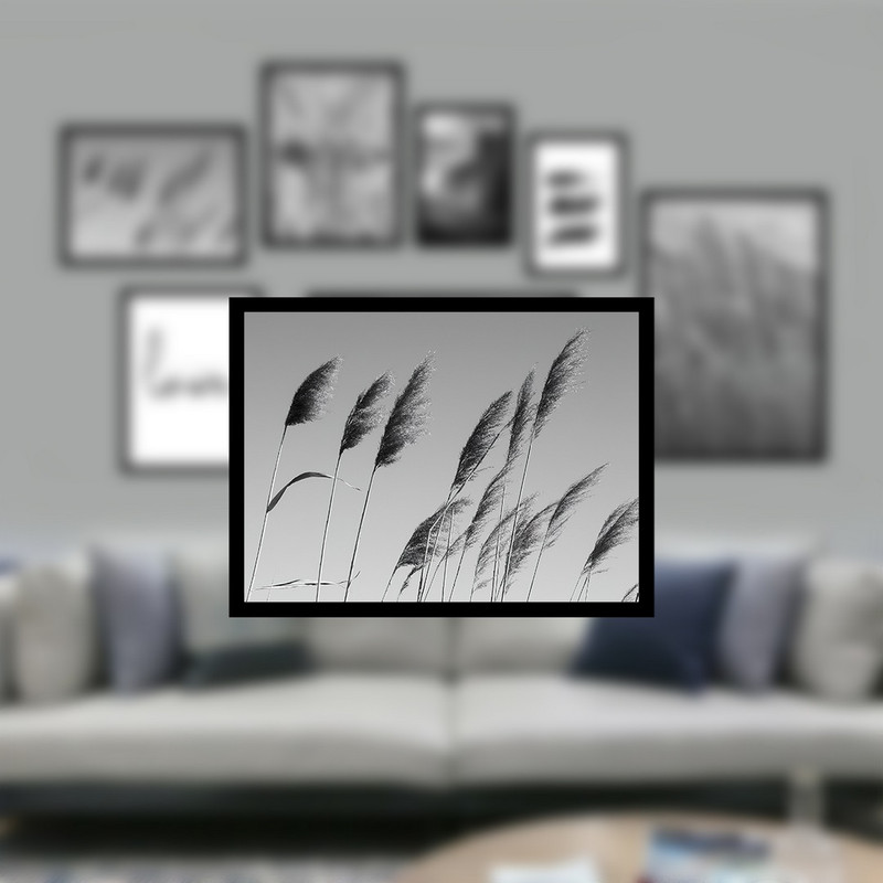 تابلو بکلیت مدل طرح دکوراتیو گل نی و سیاه و سفید B-1013 مجموعه 7 عددی