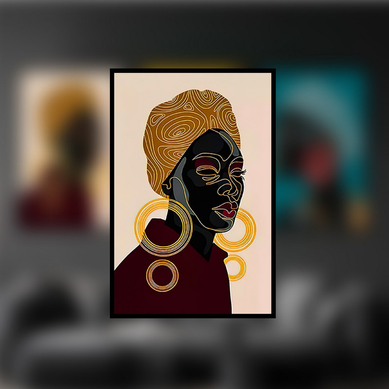 تابلو بکلیت مدل طرح نقاشی دختر سیاه پوست افریقایی B-941 مجموعه 3 عددی