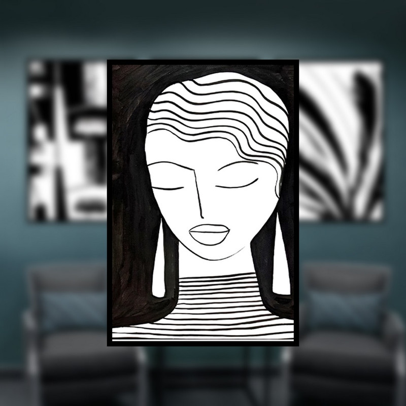 تابلو بکلیت مدل طرح نقاشی مینیمال دخترانه B-1112 مجموعه 3 عددی