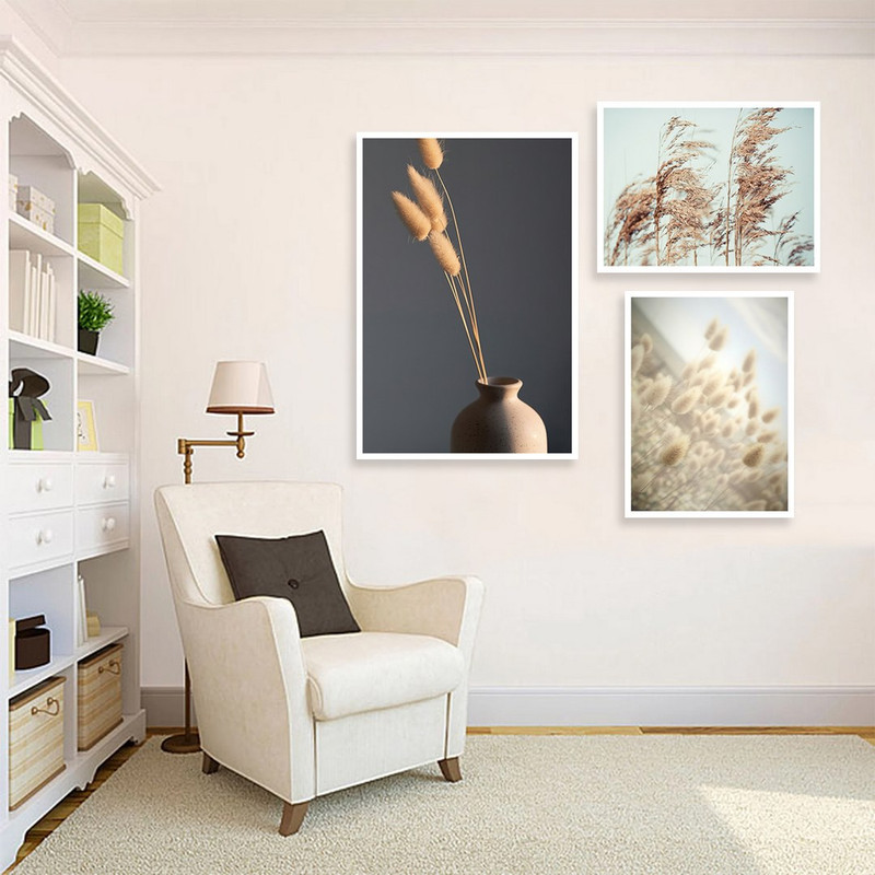 تابلو بکلیت مدل طرح گل نی و قاصدک W-1001 مجموعه 3 عددی