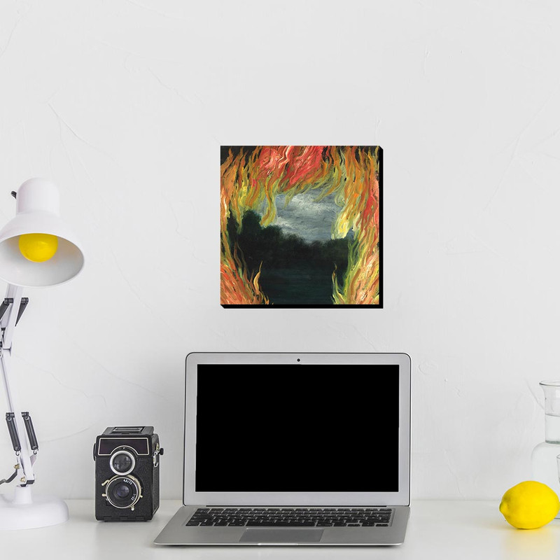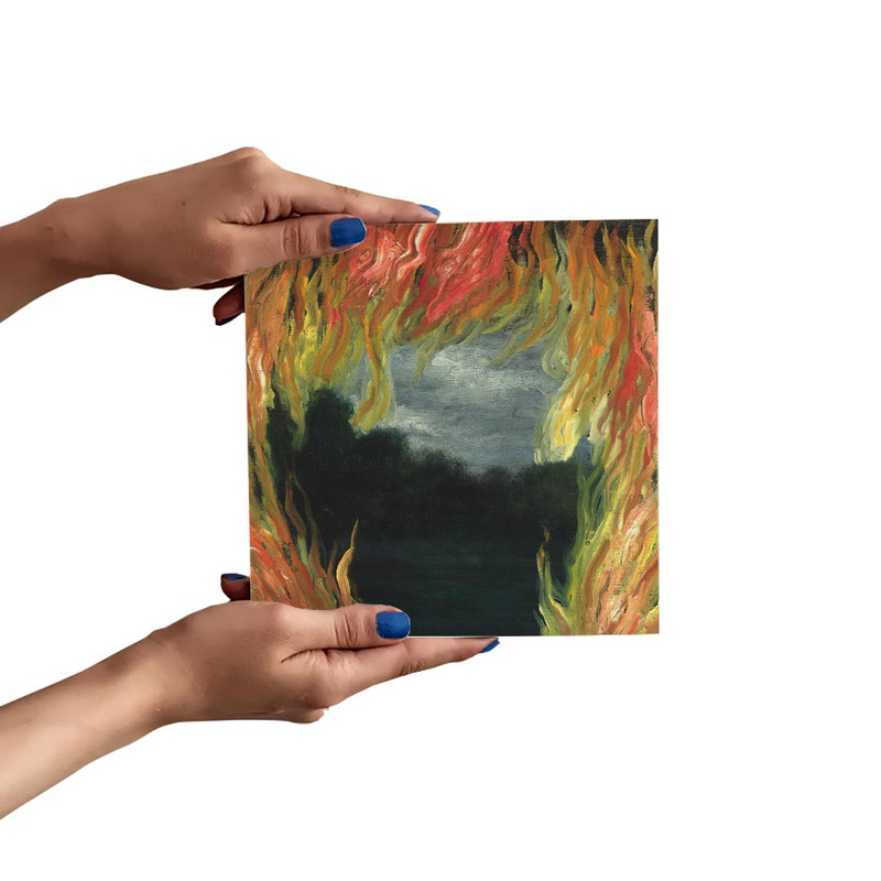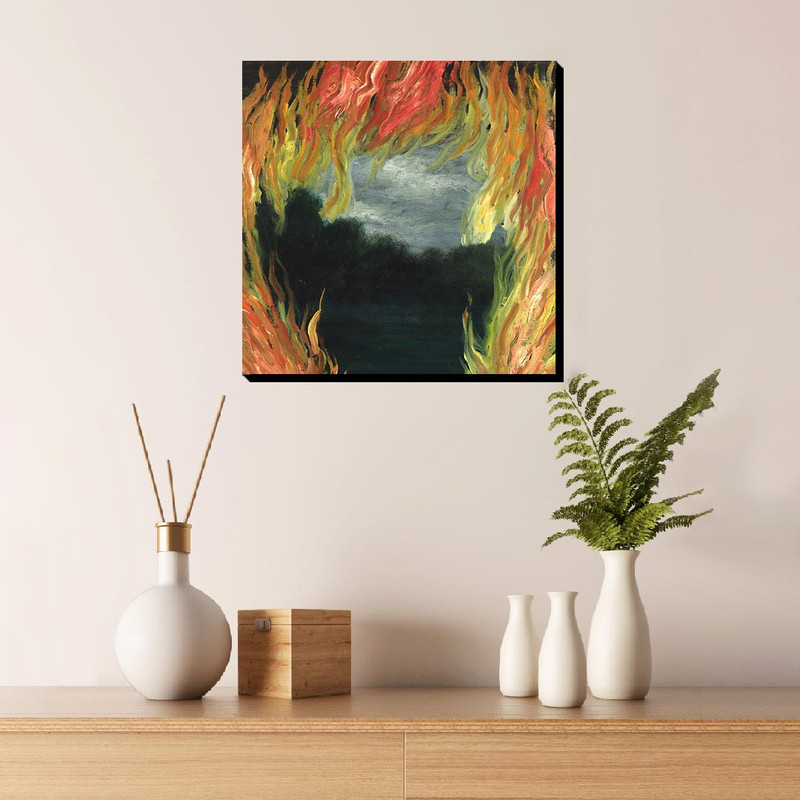 تابلو ترمه طراحان ایده طرح منظره در آتش از ماگریت کد art0389