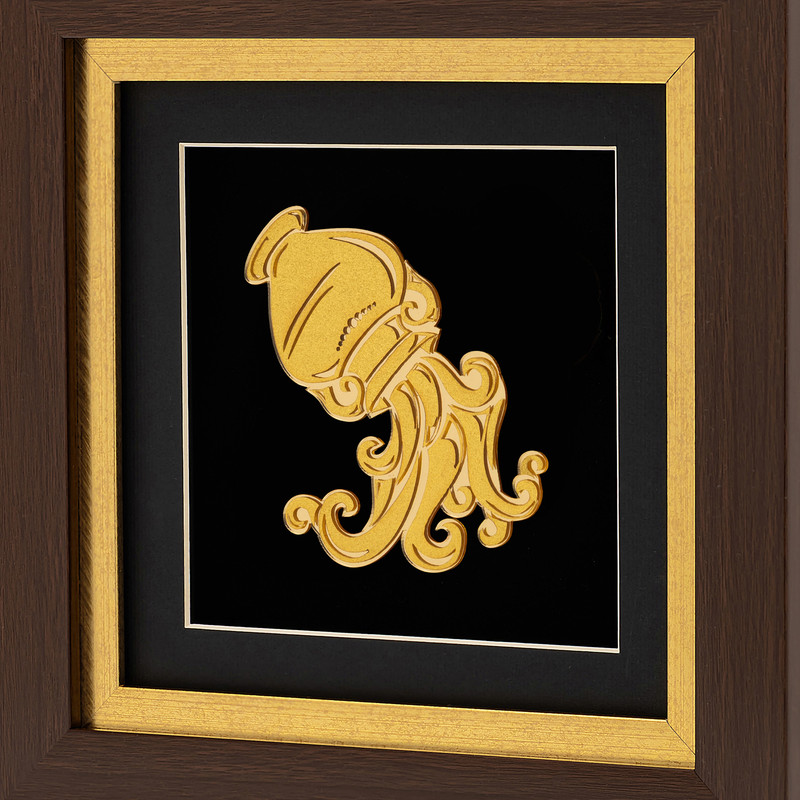 تابلوی بهمن با نماد دلویی که آب از آن فرو میریزد، نمادی از بخشش، زلالی و خرد درونی است. نماد از ورق طلا ساخته شده و در مرکز تابلو میدرخشد، بهگونهای که انعکاس نور در خطوط منحنی جریان آب، حرکت را تداعی میکند. قاب پیویسی براق در تضاد با درخشش طلایی، ترکیبی چشمنواز و مدرن میسازد.