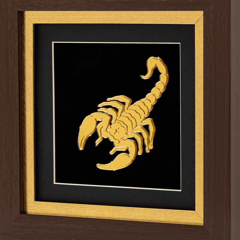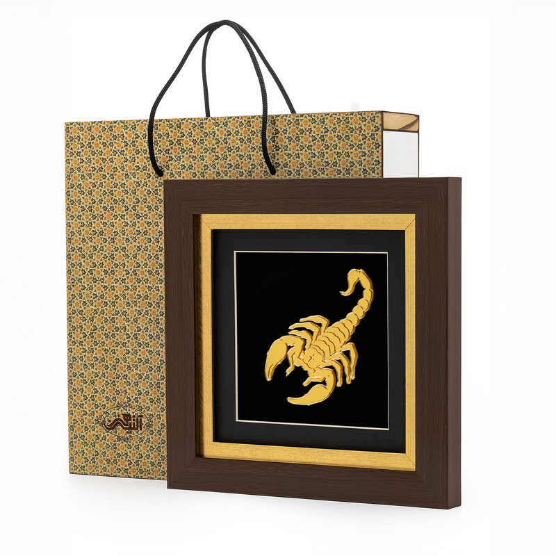 تابلوی آبان با نماد عقرب طلایی، ترکیبی از قدرت و رمزآلودگی را در قالبی مینیمال به تصویر میکشد. جزئیات ظریف خطوط عقرب با درخشندگی ورق طلا هماهنگ است و حس عمق و تمرکز را در بیننده برمیانگیزد. قاب از جنس پیویسی با پوشش مات ساخته شده که به زیبایی رنگ طلایی جلوه میدهد. این اثر برای افرادی با روحیهی قوی و دروننگر، انتخابی منحصربهفرد است.