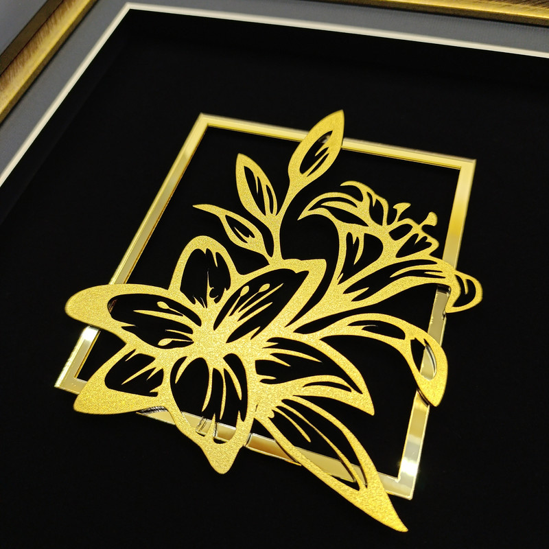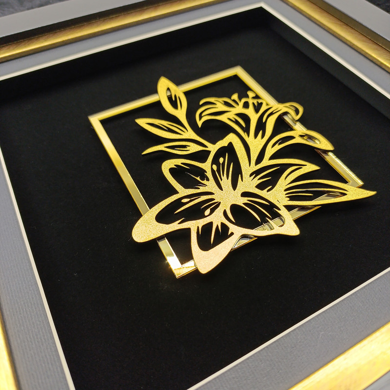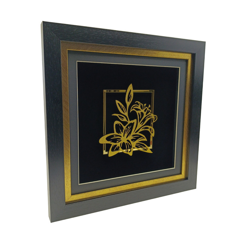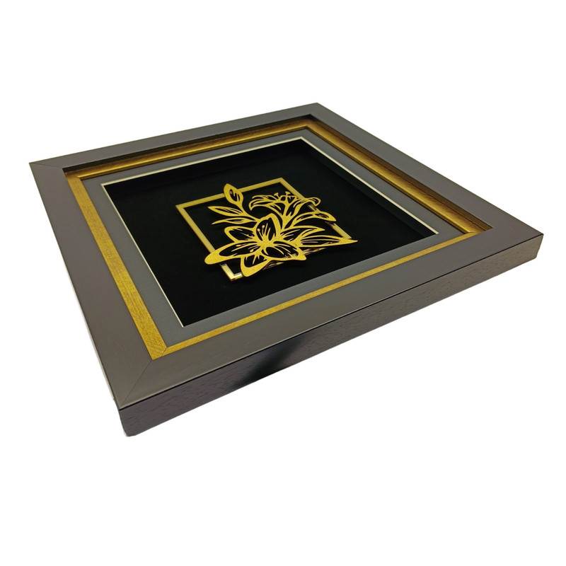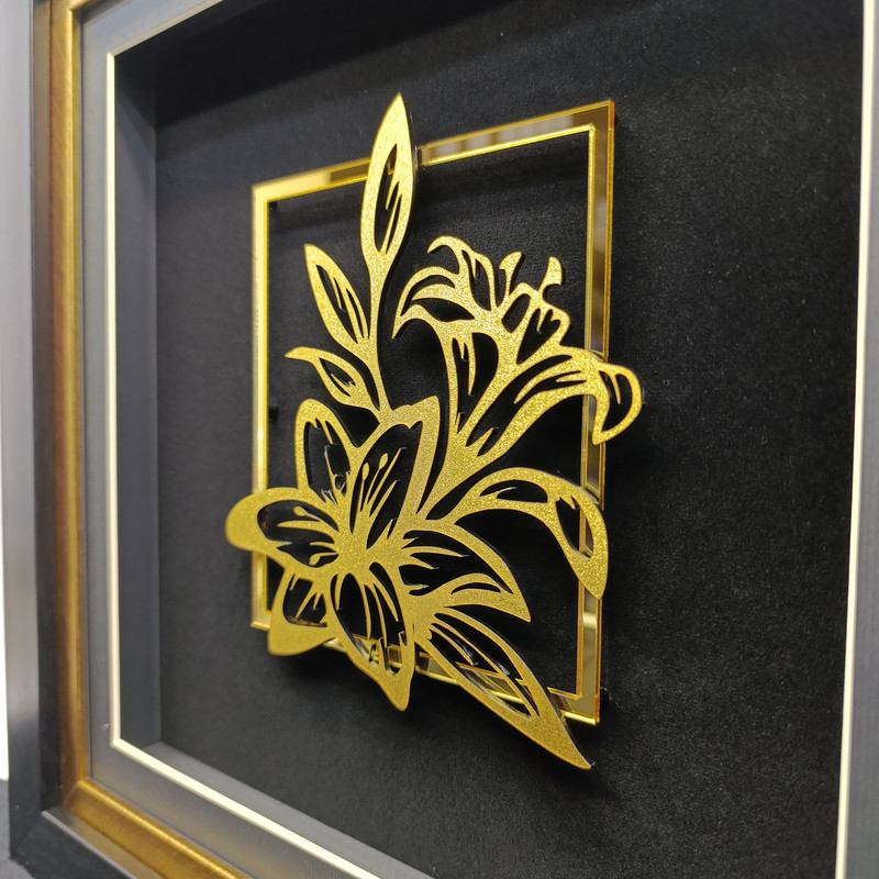 تابلوی گل لیلیوم قابدار، اثری چشمنواز و لطیف از ترکیب هنر و ظرافت است که با درخشش طلایی خود، جلوهای از زیبایی و وقار را به فضای شما میبخشد. طرح گل لیلیوم که نماد پاکی، عشق و شکوه است، بر زمینهای مشکی نقش بسته و در قابی شیک با ترکیب طلایی و مشکی قرار گرفته تا هارمونیای دلانگیز و مجلل پدید آورد. درخشندگی طلایی طرح، در کنار تضاد دلنشین پسزمینه، جلوهای لوکس و خاص ایجاد کرده که چشم هر بینندهای را خیره میسازد. این تابلو میتواند زینتبخش دیوار منزل، محل کار یا فضایی هنری باشد و حس آرامش، لطافت و اصالت را به محیط القا کند. همچنین گزینهای ایدهآل برای هدیه دادن به کسانی است که سلیقهای ظریف و هنردوست دارند.