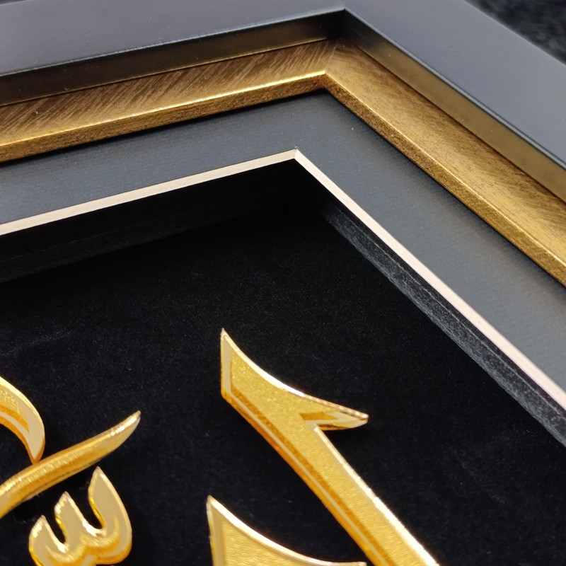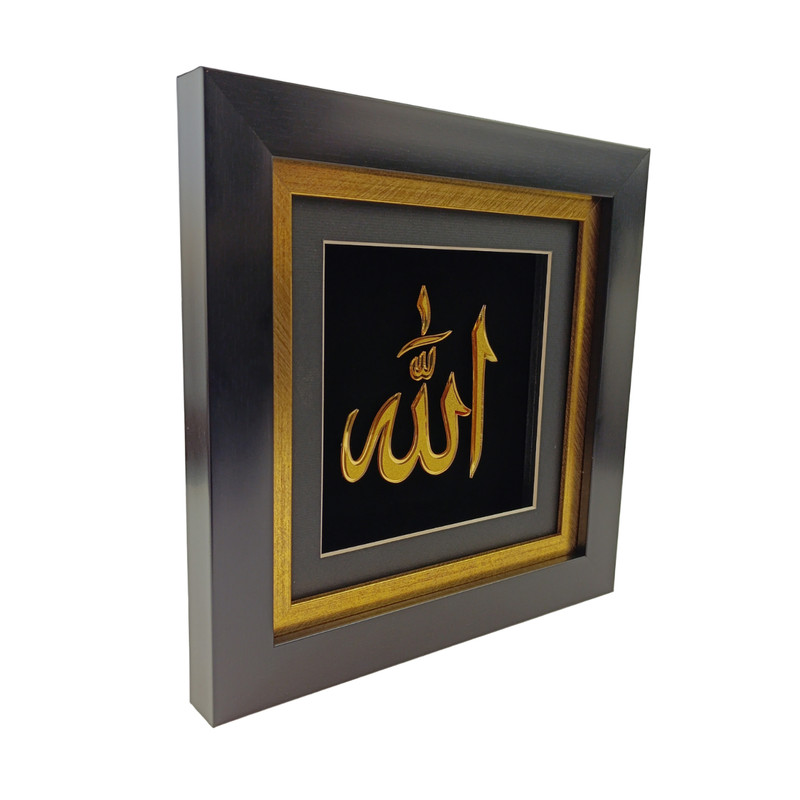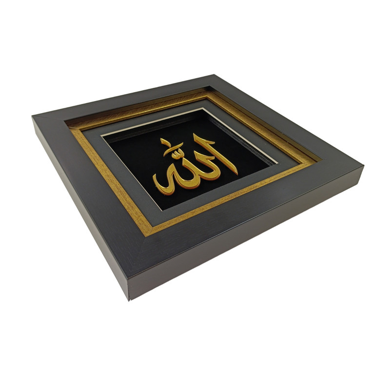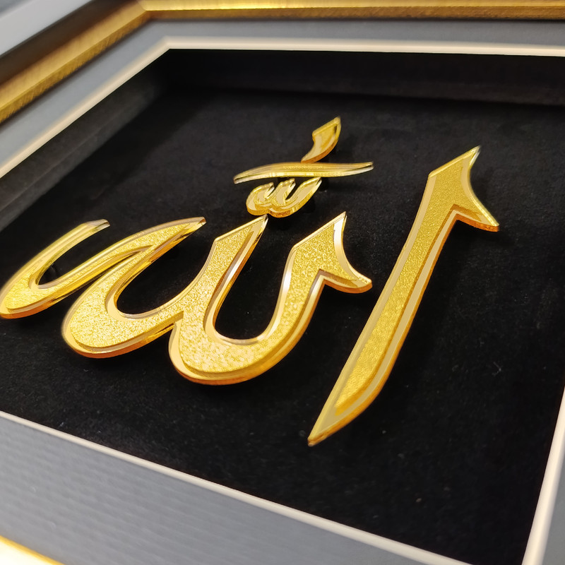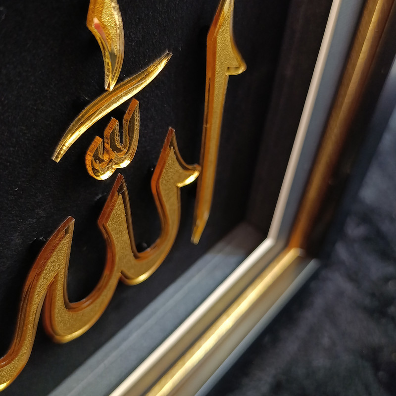 قاب تابلو از جنس فایبرگلس مقاوم ساخته شده و با ترکیب رنگ مشکی و طلایی، هماهنگی کامل با متن طلاکوب دارد. تضاد رنگ طلایی خط و پسزمینه مشکی، باعث شده نام مقدس «الله» با قدرت و درخشش خاصی نمایان شود و نگاه هر بینندهای را به خود جلب کند.