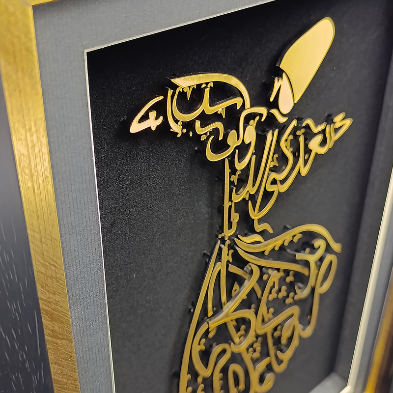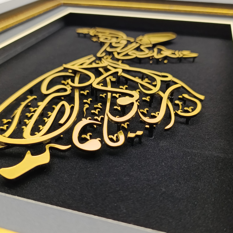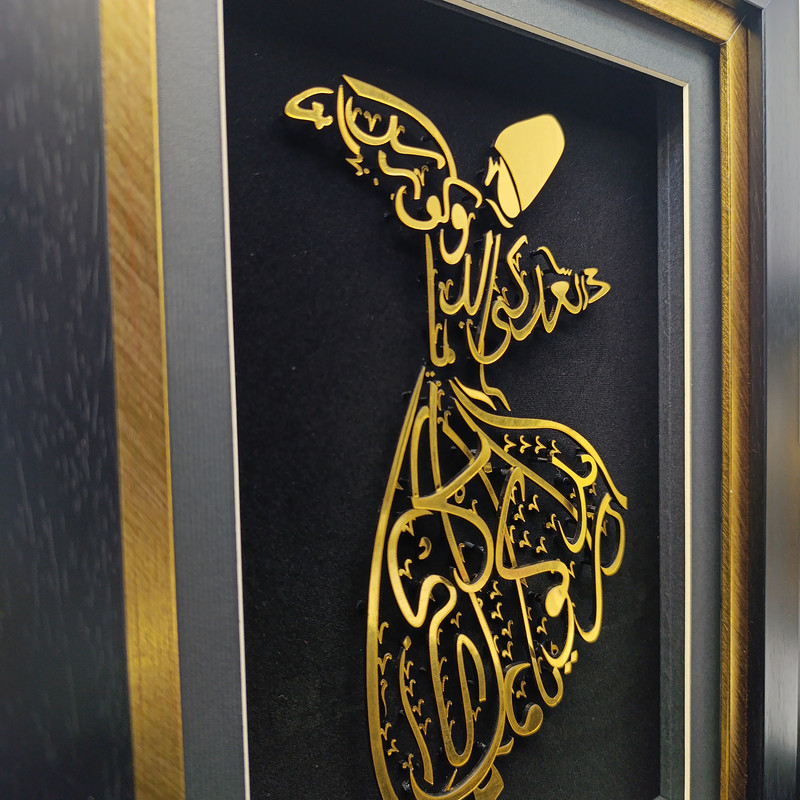 تابلوی «رقص سماع» جلوهای باشکوه از هنر ایرانی ـ اسلامی است که با ترکیب خطاطی و تصویرسازی، روحانیت و زیبایی این آیین عرفانی را به نمایش میگذارد. در این اثر، تصویر درویش چرخان با خطوط طلایی بر زمینهی مشکی طراحی شده و با قاب شیک و برازندهای همراه است که بر درخشندگی و شکوه آن میافزاید.