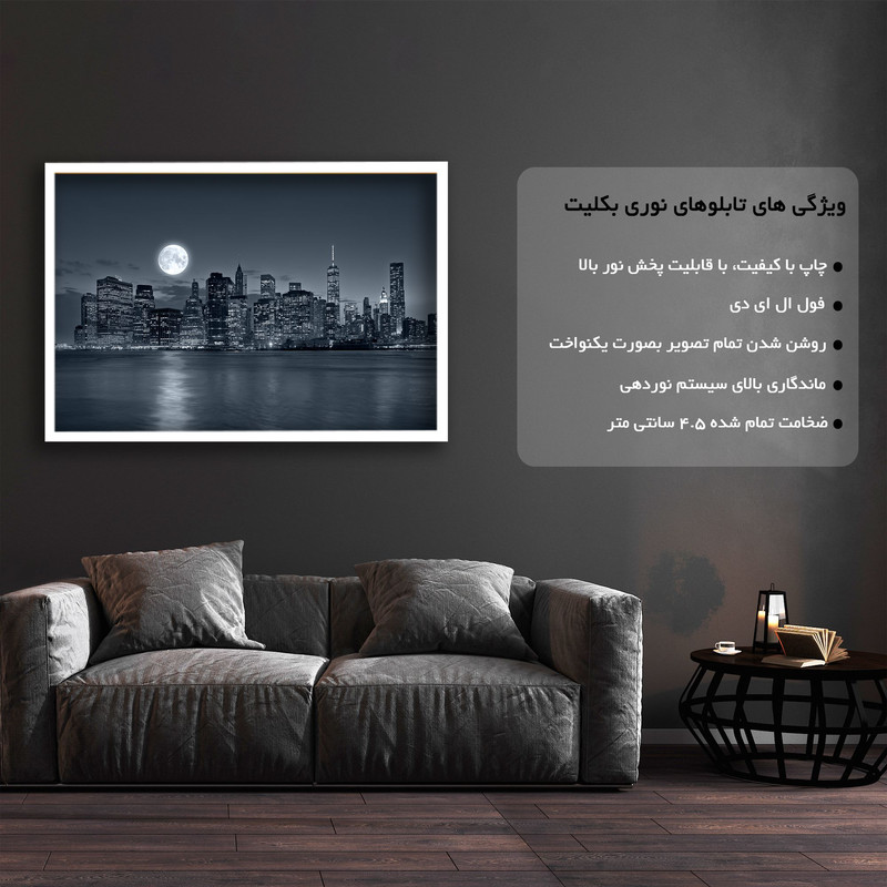 تابلو نوری بکلیت طرح منظره شهر و شب شب مهتابی مدل W-s50