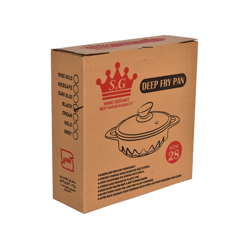 تابه اس جی از کیفیت بالایی برخوردار میباشد و همچنین برای سلامتی بدن مضرر نمیباشد.تابه دودسته اس جی کد 800435 سایز28 به دلیل ظاهر زیبا و منحصر بفرد مناسب برای جهیزیه عروس و استفاده روزمره میباشد.