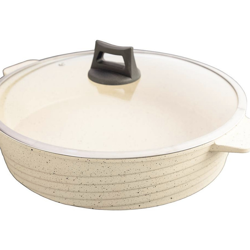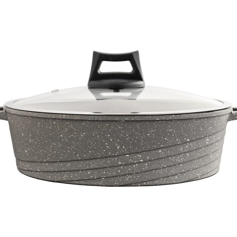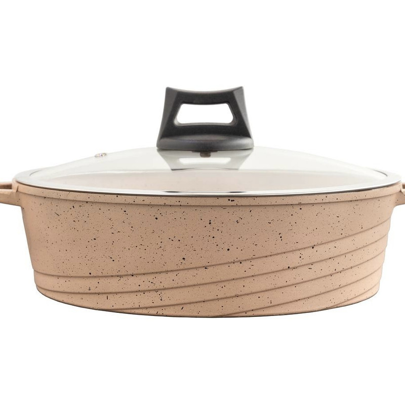 تمام گرانيت ( داخل ،بیرون ، دسته ) و امکان استفاده در فر و باربکیو .و امکان استفاده در ماشین ظرف شوی و