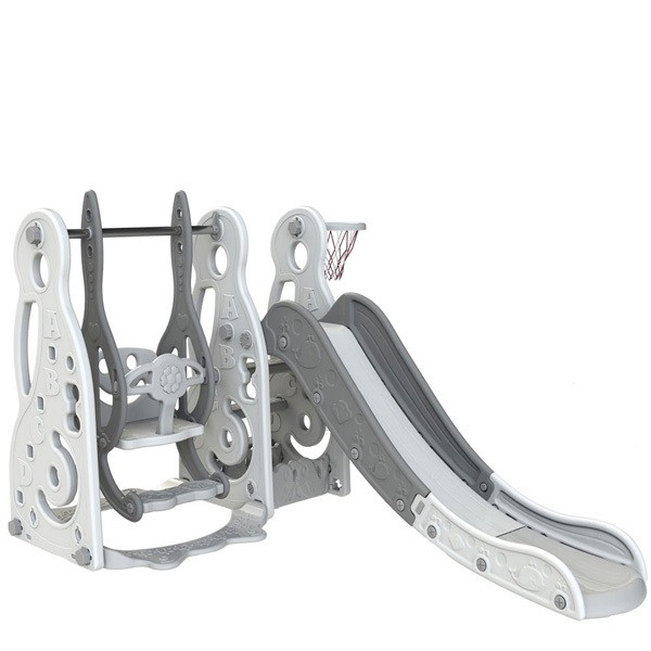 دارای حفاظ تاب و لبه های بلند کنار سرسره و دارای حفاظ ایمنی تاب برای محافظت کودک و دارای حلقه بسکتبال و توپ بسکتبال سایز کوچک که تاب تا 3 درجه تنظیم ارتفاع دارد