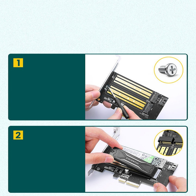 تبدیل M.2 به PCle 3.0 4X یوگرین مدل CM302-70503 می تواند یک M.2 PCIe SSD (M-Key) را به رایانه رومیزی مجهز به PCIe (ویندوز 10، 8.x، 7، و غیره) اضافه می کند تا سرعت و عملکرد را به میزان قابل توجهی افزایش دهد.