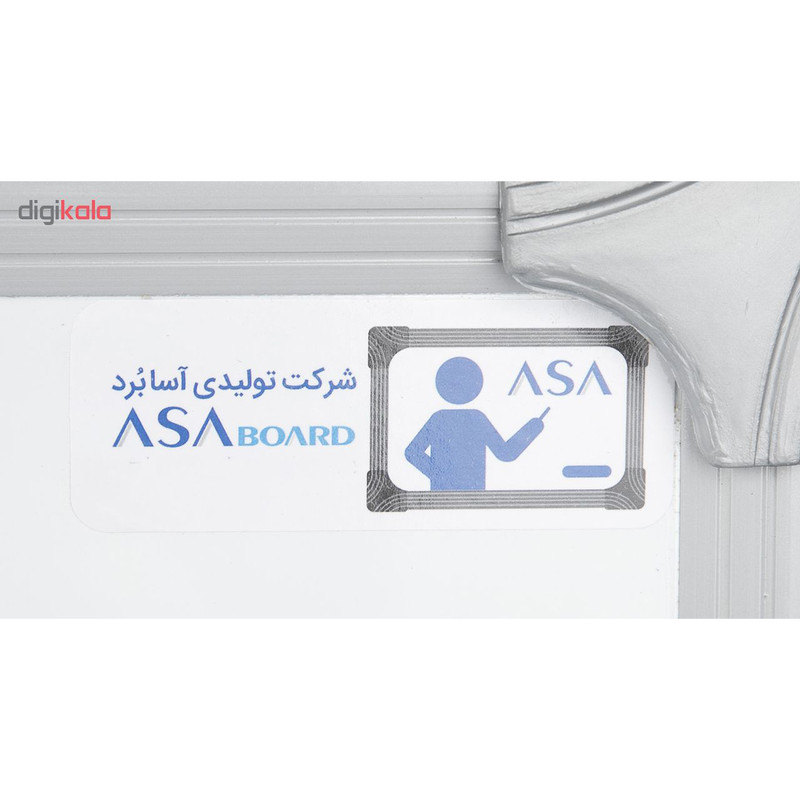 و... کاربرد دارند. اصلیترین دلیل انتخاب وایت بردهای مغناطیسی به علت صفحه (ورق) استفاده شده در آن است. ورق وایت برد مغناطیسی، وارداتی از کشور کره جنوبی به صورت فابریک leaf است. کیفیت این تخته A(درجه یک) است. جنس رویه صفحه وایت برد مغناطیسی از ورق وایت بردی کُرهای درجه یک دو پوششه است؛ پاک شدن آن آسان بوده و راحت بدون ایجاد سایه فریم پاک میشود. در تهیه پروفیل آلومینیومهای شرکت آسا برد از بیلت آلومینیوم استفاده میشود، با استفاده از مواد درجه یک (شمش) و عمل اکستروژن (شکلدهی و کشیده شدن) سپس عمل آنادایز (آبکاری) قاب آلومینیوم مستحکم، زیبا میشود. این تخته مقاوم جهت ضد تاب برداشتن است. فریمهای آلومینیوم وایت برد در رنگ نقرهای به صورت استاندارد و و همچنین رنگ مشکی (به صورت سفارشی تولید میشود. گوشههای وایت برد مغناطیسی از پلاستیک تزریقی EBS انحصاری شرکت است. داخل کار وایت برد مغناطیسی از پلی استایرن (یونولیت )فشرده، دانسیته 8، طبق الحاقیه استاندارد ملی شماره 12108 مورخه اسفند1393، علت استفاده از پلی استایرن وزن سبک و مقاومت خوب آن است که میان ام دی اف( پشت کار) و ورق آهن (رویه کار) قرار میگیرد. همچنین با استفاده از پرس گرم و چسبندگی مانع تاب برداشتن وایت برد و لق زدن صفحه میشود.
