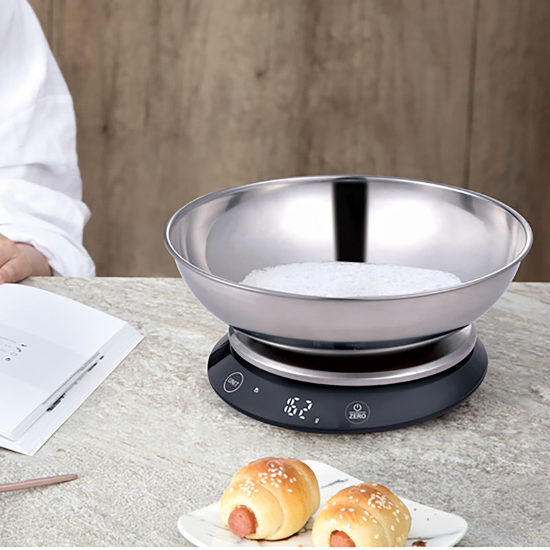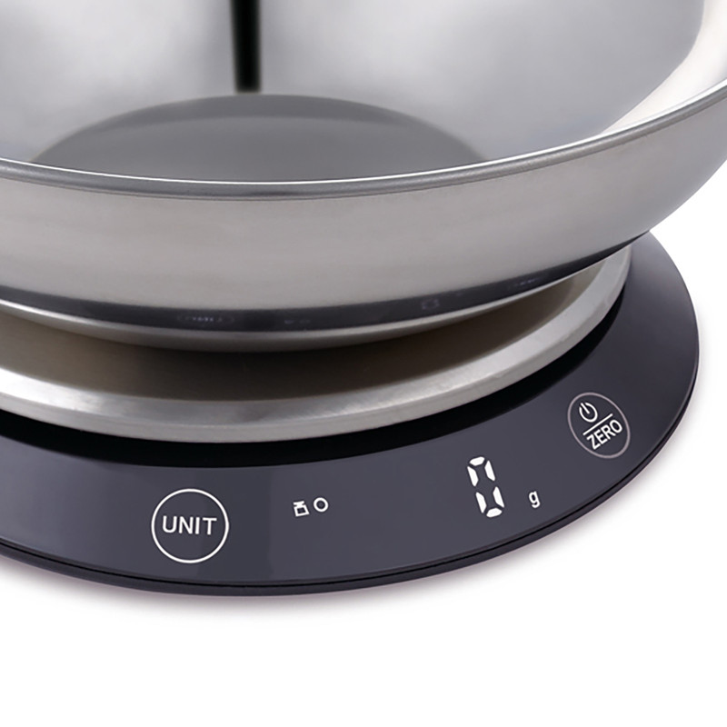 این ترازو دارای کاسه ای از جنس استیل مرغوب و دارای روکش ضد اثر انگشت بوده و بدنه ترازو مشکی رنگ است . بیشترین وزن قابل تحمل این دستگاه 5 کیلو گرم است و وزن را بر اساس واحد کیلوگرم یا پوند اندازهگیری میکند و همچنین دقت اندازهگیری آن (حساسیت) 1 گرم است. به این معنی که توان تشخیص تغییرات وزن بیش از 1 گرم را دارد. همچنین این ترازو قابلیت اندازه گیری حجم مایعات (آب و شیر )را هم دارد و با فشردن کشید مربوطه امکان تغییر آن از حالت سنجش وزن به سنجش آب برحسب میلی لیتر و همچنین سنجش شیر بر حسب میلی لیتر امکانپذیر است.